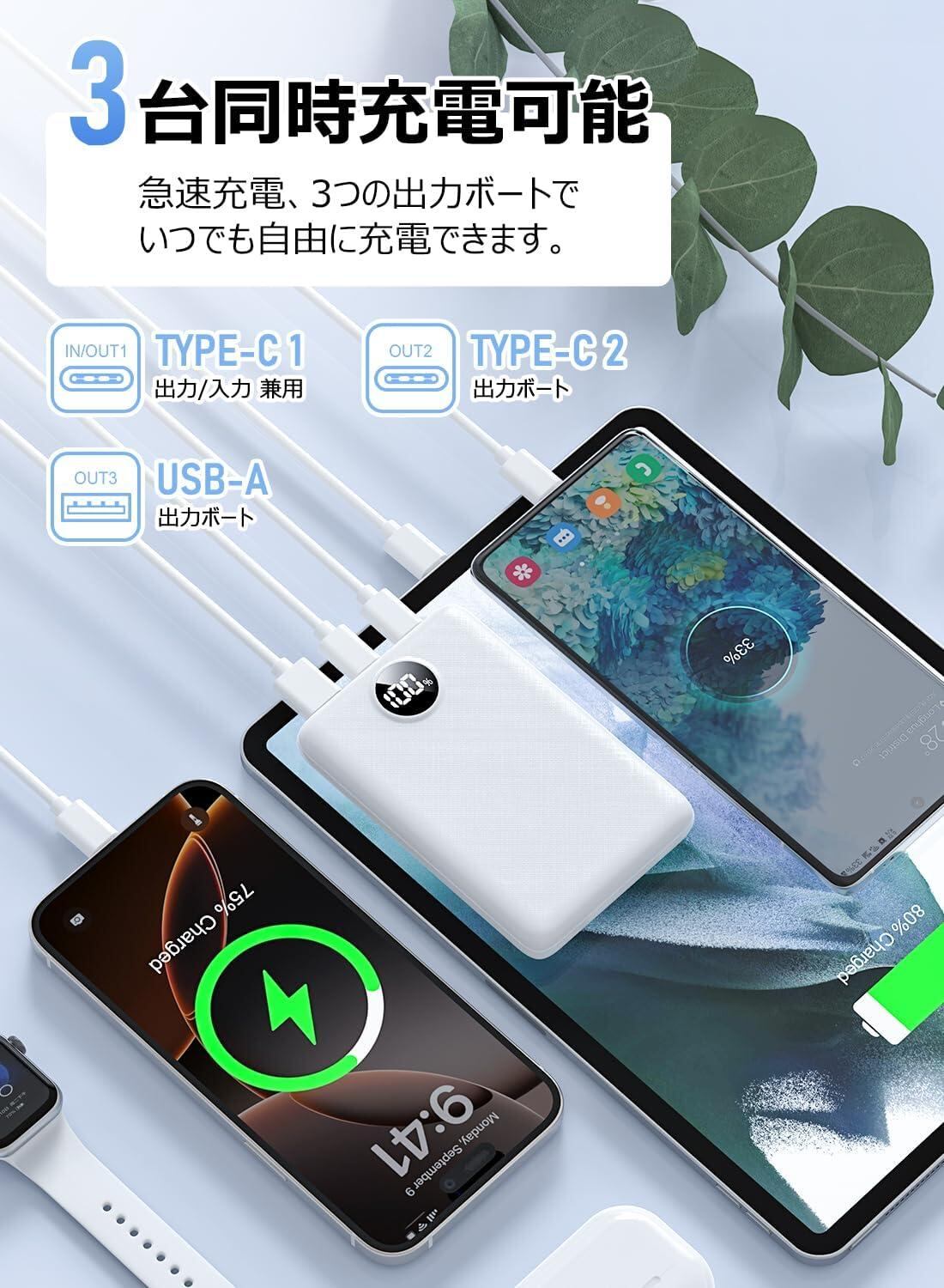 モバイルバッテリー 大容量20000mAh大容量·超薄型·業界新登場モバイルバッテリー 軽量 小型 急速充電 3台同時に充電 LED残量表示 PSE技術認証済 安全回路保護 Type-C入出力兼用&U
