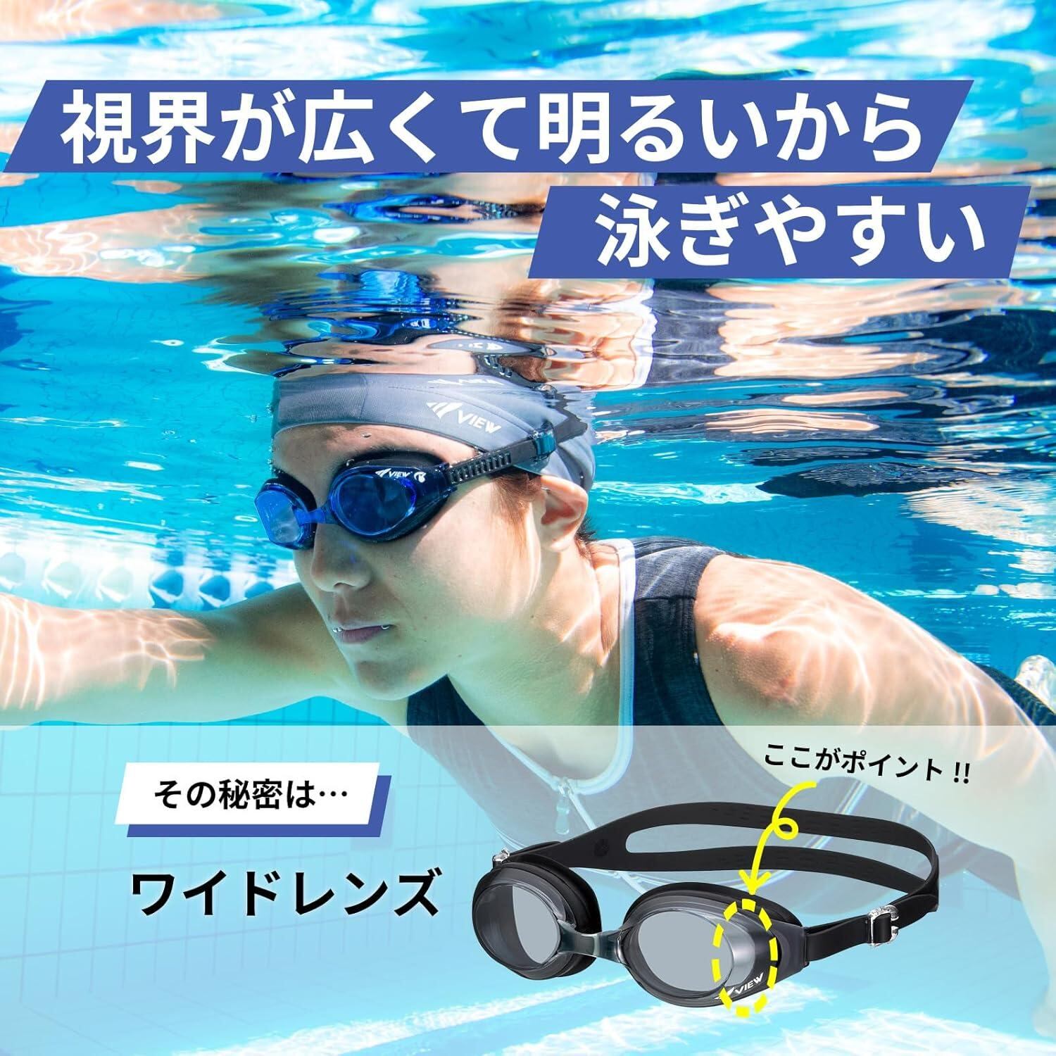 VIEWビュー 日本製 スイミングゴーグル 大人用 視界が広く泳ぎやすいフィットネスモデル UVカット機能付で海水浴にも V610