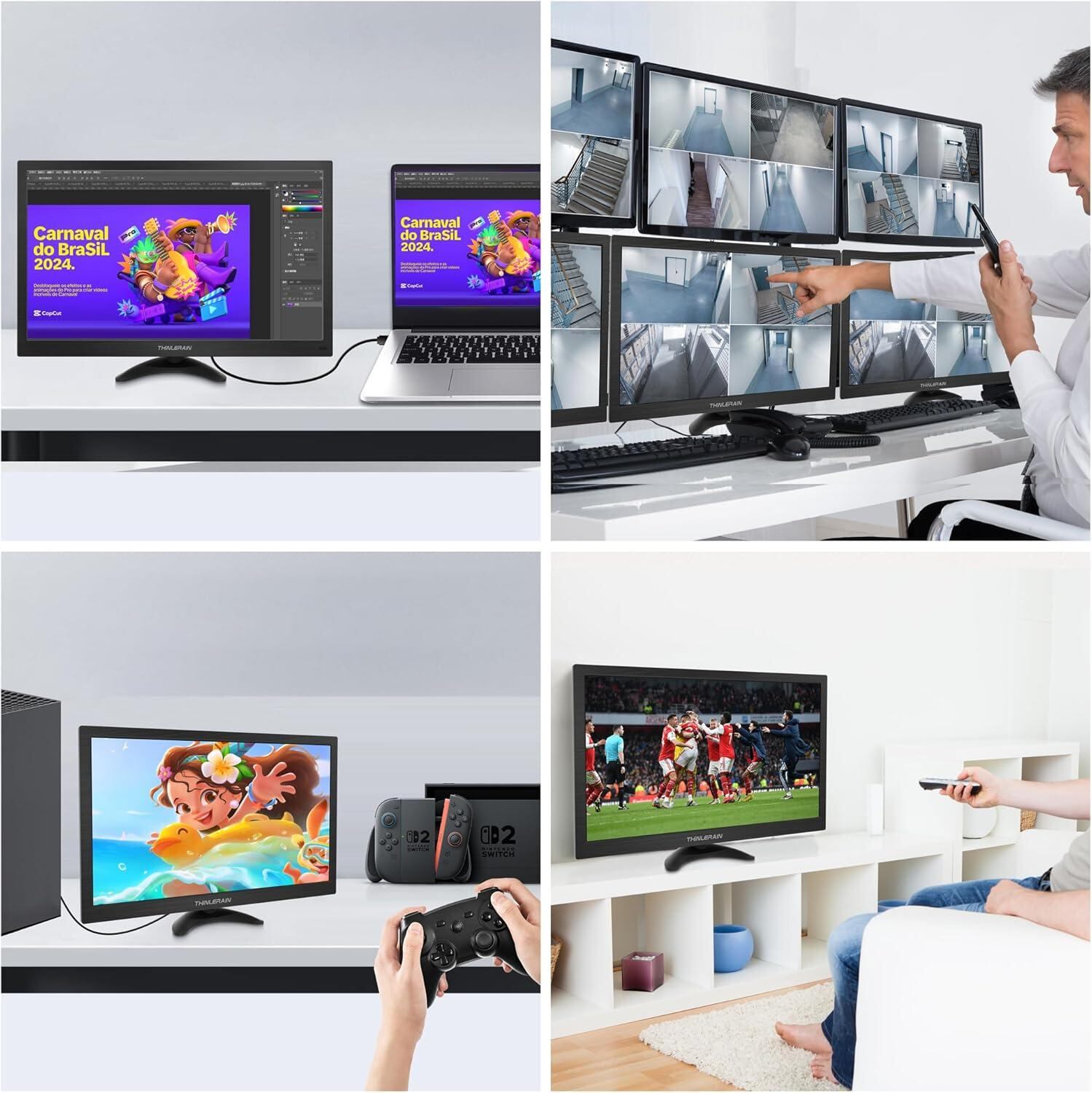 15.6インチモニター 小型 ディスプレイ 液晶ディスプレイ モニター/HDMI VGA AV BNC USB ポート/1600x900/16:9/140°視野/VESAマウント/スピーカー内蔵/リモ
