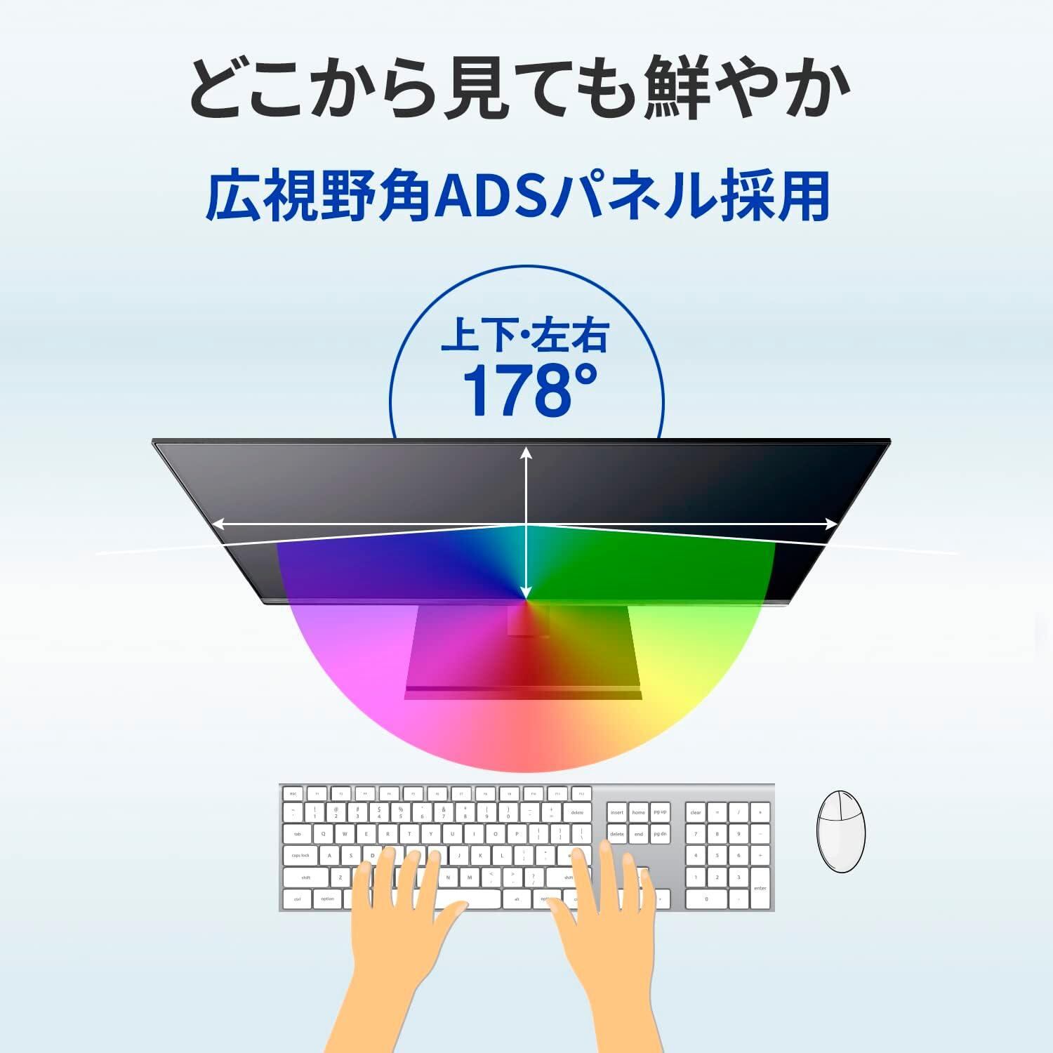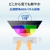 どこから見ても鮮やか!広視野角ADSパネル採用上下左右178°の広視野角なADSAdvanced super Dimension Switchパネルを採用。見る位置や角度による色やコントラストの変化が少なく、どこから見ても映像を鮮明に映し出します。「ADSパネル」は特性に偏りがほとんどないため、さまざまな用途で使いやすいパネルとなっています。