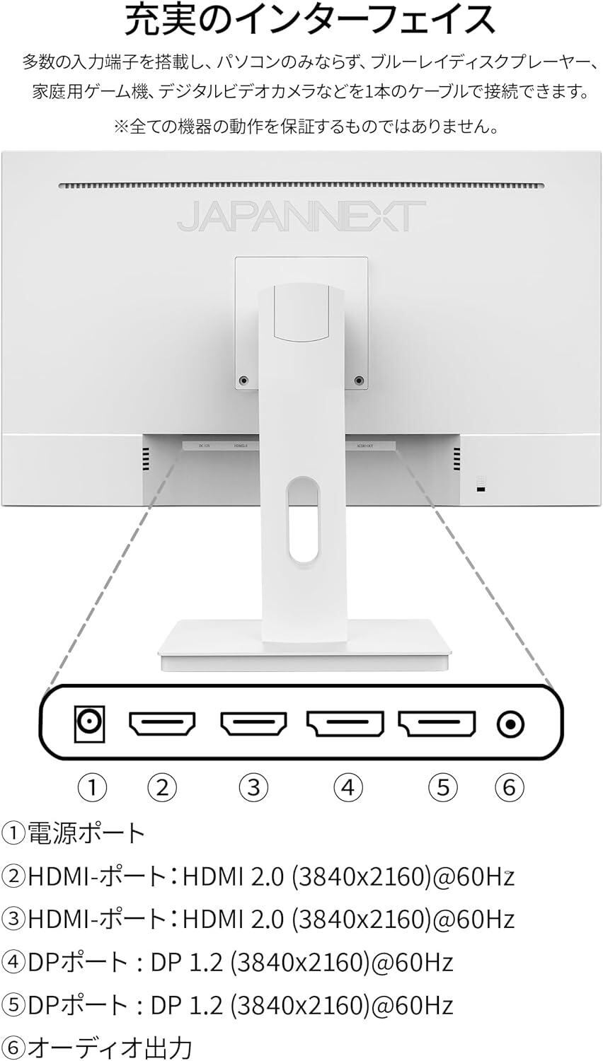JAPANNEXT 28インチ モニター 4K UHD 3840x2160解像度 IPS ディスプレイ HDMI/DisplayPort/ブルーライトカット JN-IPS28UHDR-W