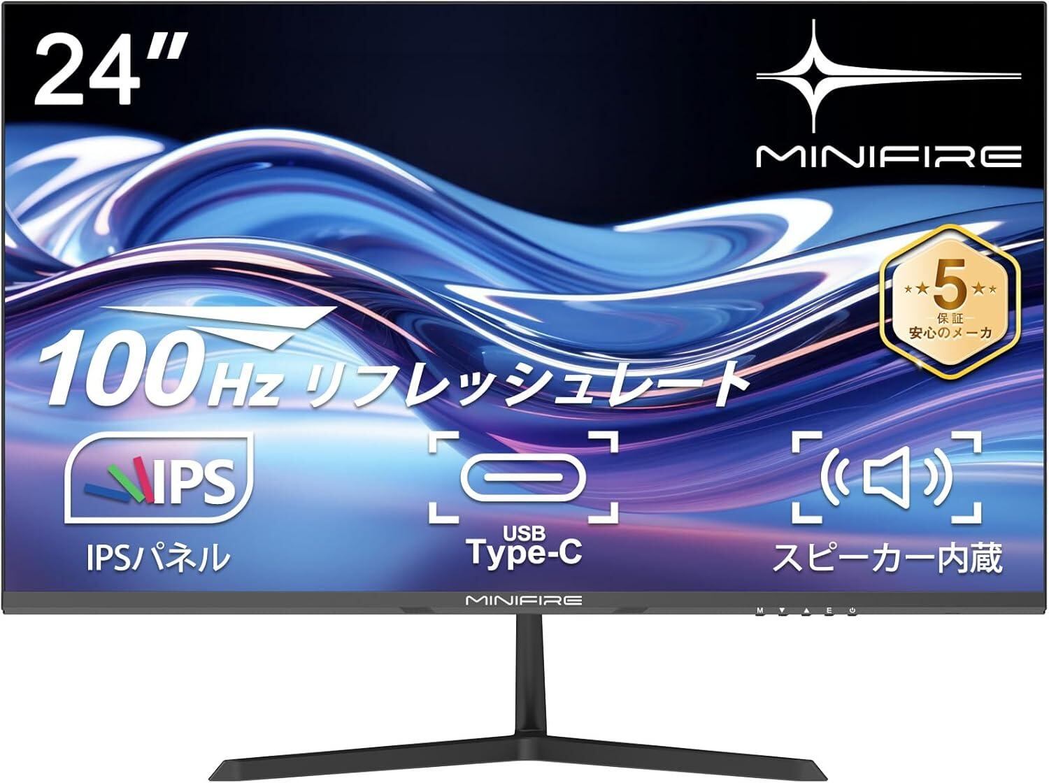 Minifire 24インチ USB-C 100Hz モニター IPS スピーカー内蔵 HDR10 Adaptive Sync VESA対応 フレームレス Type-C/HDMI スピーカー付 チルト