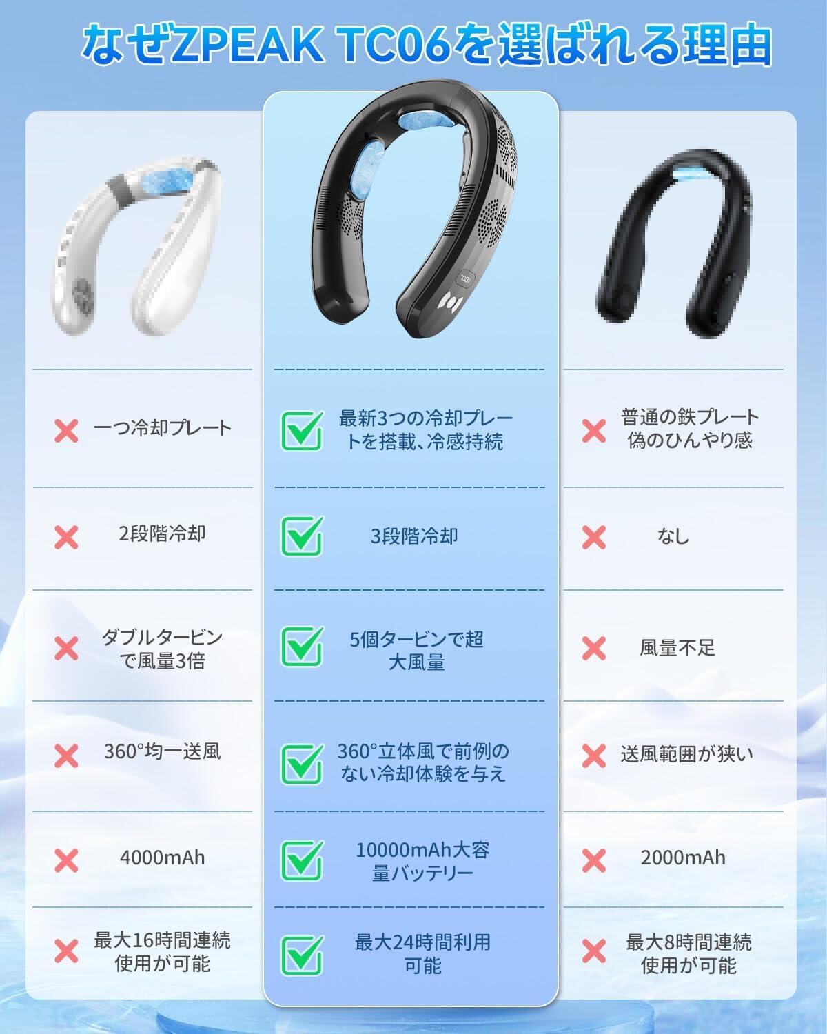 ネッククーラー 冷却プレート2025年夏革新型&瞬間冷却ZPEAK 首掛け扇風機 ペルチェ素子 3段階風力調節 ネックファン 首掛けクーラー 暑さ対策 Type-C急速充電 8000mAh大容量 LC