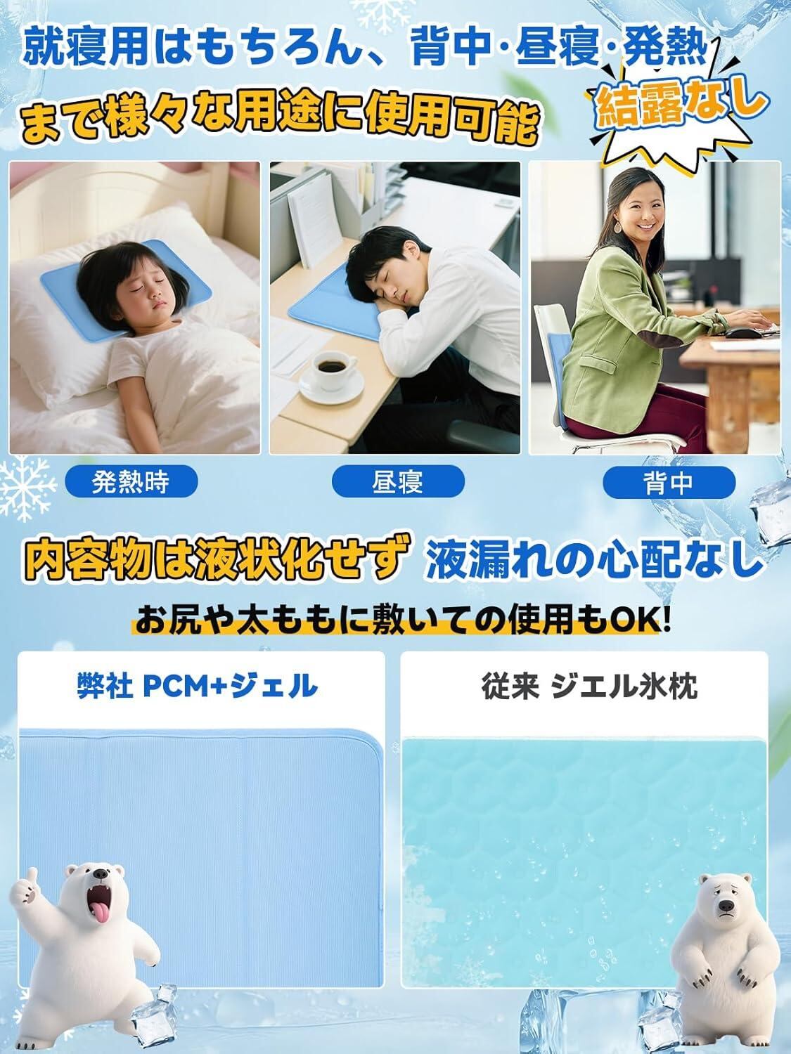 業界初柔軟性PCM・28℃で自然冷却回復・液状化しない氷枕 冷感マット アイス枕40×30cm 氷嚢 結露なし 内容物漏れない 肌に優しい素材 繰り返し使用可能 冷却グッズ 折り畳み 長時間 暑さ対策