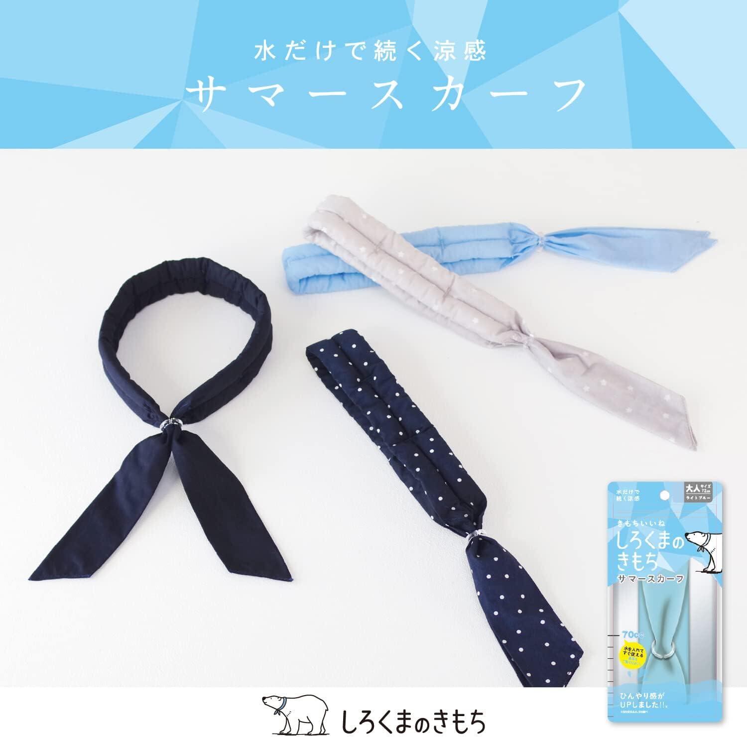 しろくまのきもち サマースカーフ フリーサイズ ライトブルー 冷却グッズ 夏 ひんやり 暑さ対策 ユニセックス SSF-02 幅4×長さ72cm