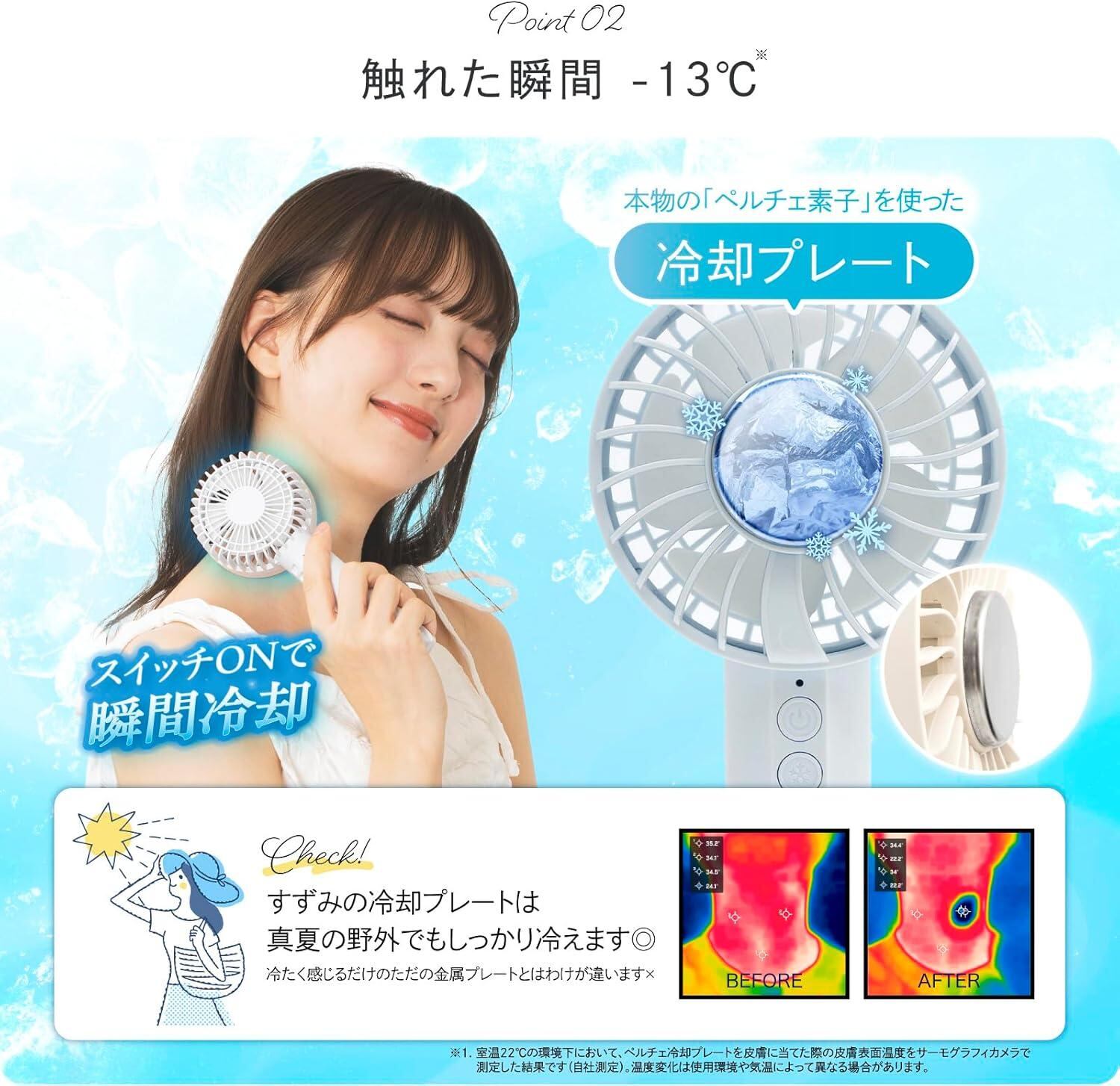 ベルモンド ハンディファン 扇風機 冷却 上品なくすみカラーとかわいいフォルム×瞬間冷却プレート ポータブル 手持ち 携帯 小型 軽量 卓上 首掛け ペルチェ 熱中症対策 暑さ対策グッズ | Suzu