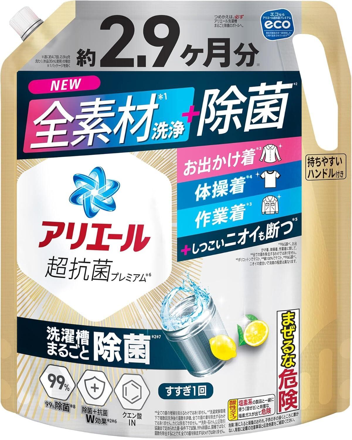 アリエール 洗濯洗剤 液体 超抗菌プレミアム 洗濯槽まるごと除菌 スッキリひかえめな香り 詰め替え 2210g大容量