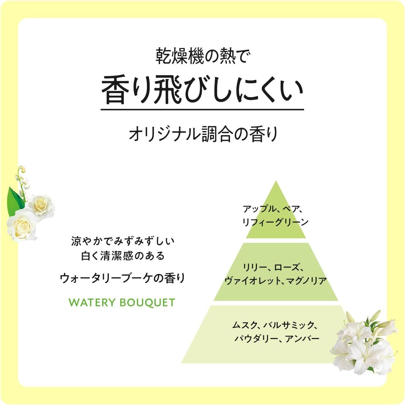 乾燥機にかけても香り飛びしない、清潔感のあるウォータリーブーケの香り