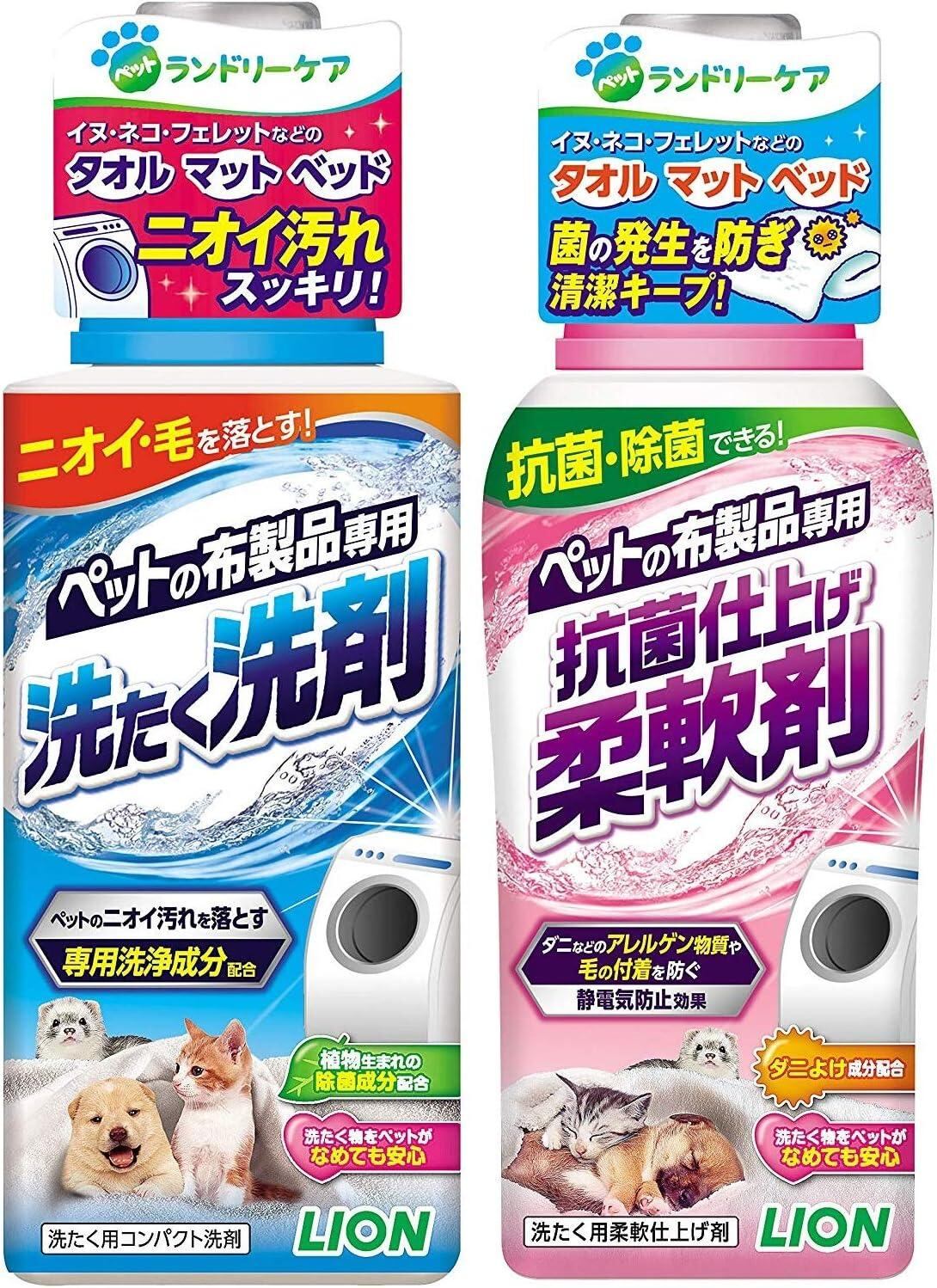 ライオン ペットの布製品専用 2点セット 洗たく洗剤 400g + 抗菌仕上げ柔軟剤 360g