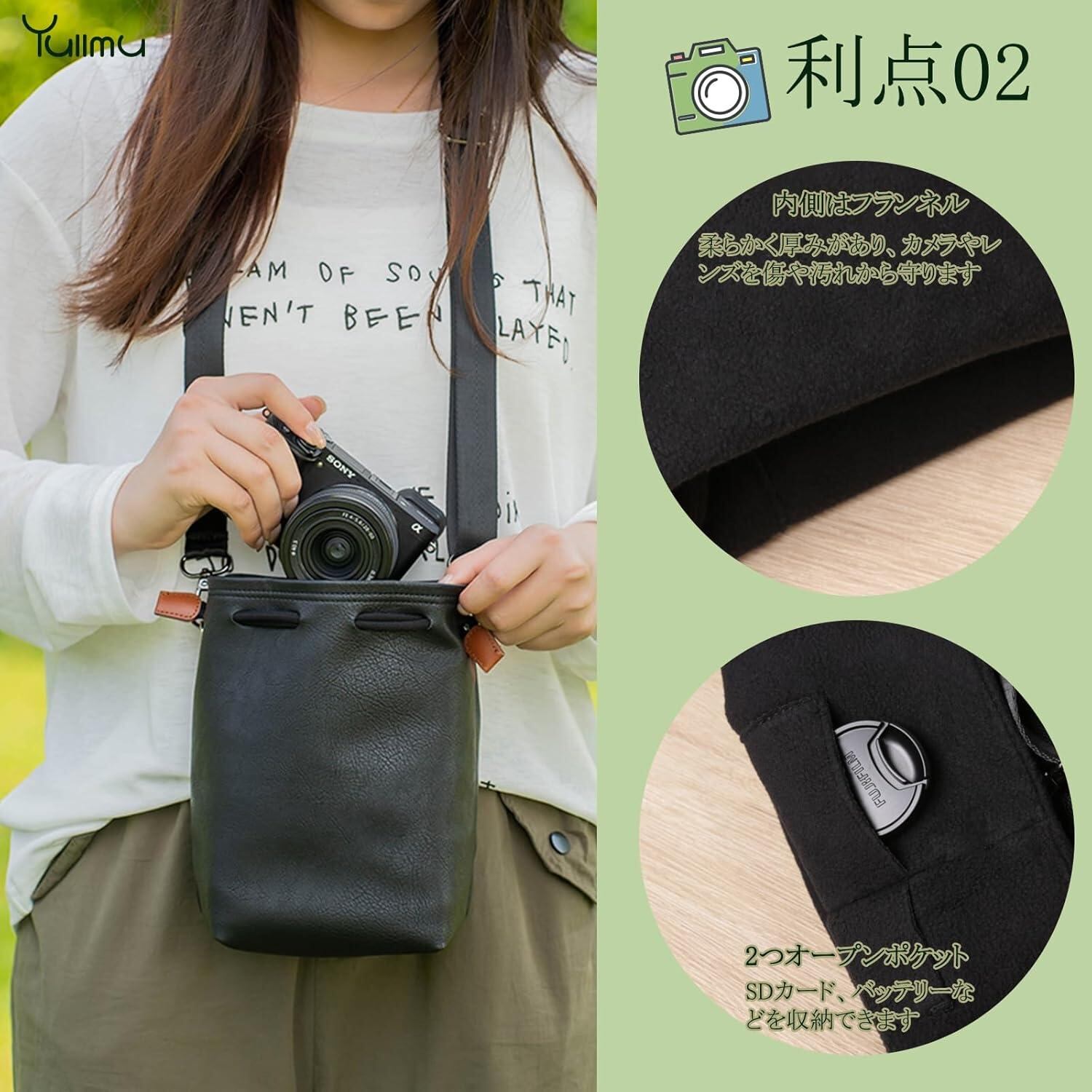 Yullmu カメラポーチ 巾着 カメラバッグ レンズケース 軽量 一眼レフカメラ/デジタルカメラなどに適用 防水 黒 L