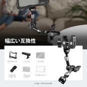 【スーパークランプ付き多関節マジックアーム】7"/18cmロゼットマジックアームクランプマウントは360°摩擦ギアジョイントで接続された2本の多関節アームを備え、DSLRカメラ、LEDビデオライトパネル、マイク、フィールドモニターコンパチブル Atomos Ninja V、スマホホルダー、アクションカメラアダプターなどの多彩な位置決めを提供し、最大3kgまで対応します。スーパークランプは1/4 "と3/8"ARRI位置決め穴を介して、ロッド、ポール、テーブル、ケージ、ハンドル、三脚に接続します。