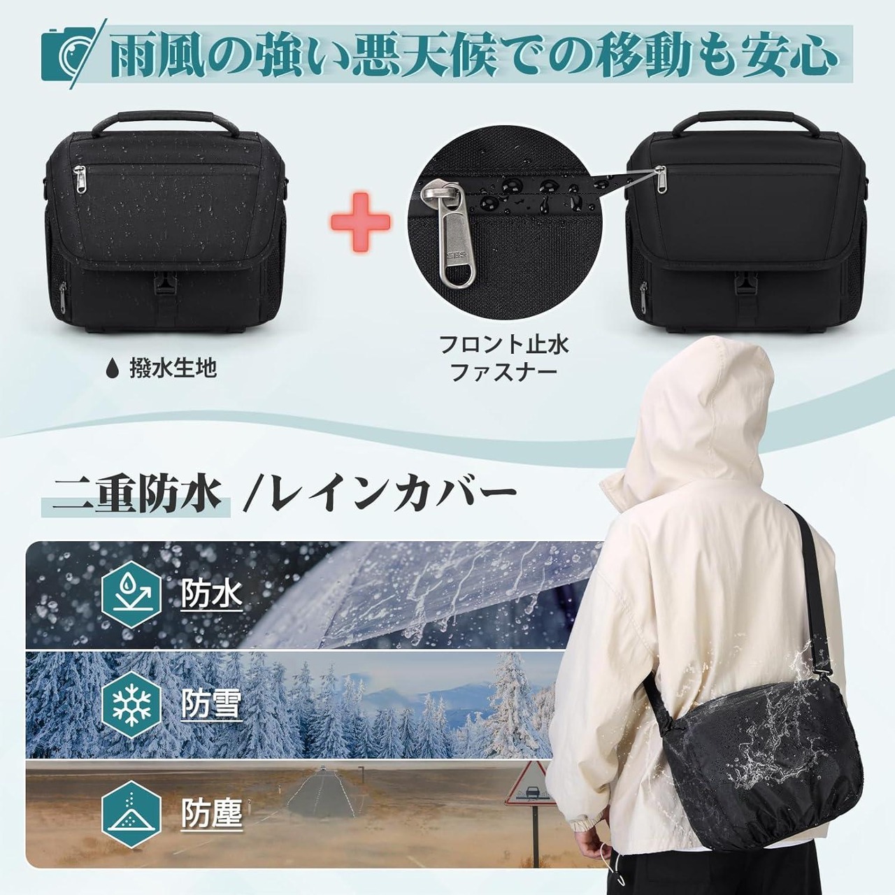 NEWHEY カメラバッグ 防水 カメラケース 一眼レフカメラ適用 ショルダーバッグ 仕切り調整可 レインカバー付き アウトドア 旅行 撮影 山登り ブラック