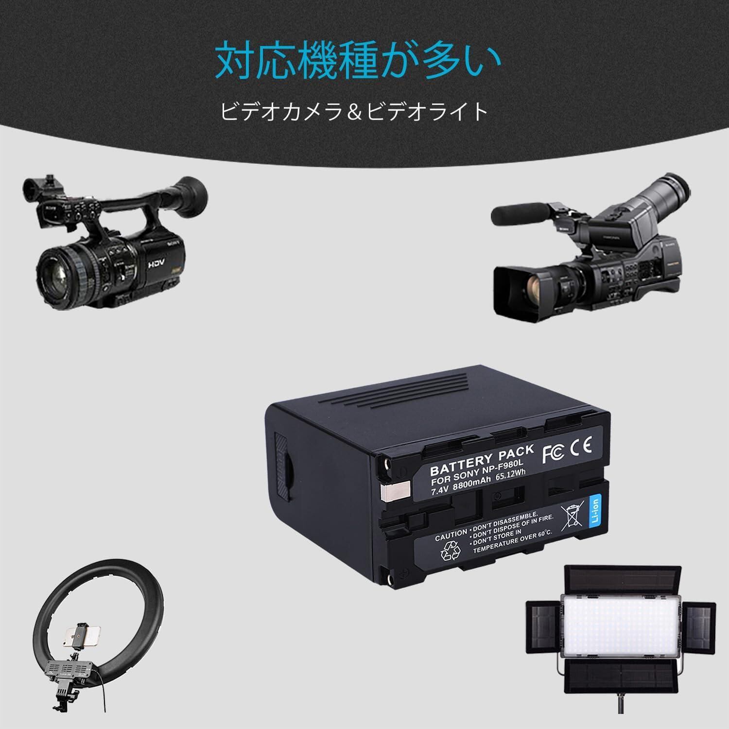 【NP-F970互換バッテリー】本製品はSony NP-F970 NP-F960 NP-F975 NP-F950 NP-F930 NP-F330 NP-F550 NP-F570 NP-F750 NP-F770、F970/F550用のバッテリーパックに使用可能です。HDR-AX2000/HDR-FX7/HDR-FX1000/HDR-FX1/CCD-RV100CCD-RV200/CCD-SC5/CCD-SC6/CCD-SC65/CCD-SC7/CCD-SC7E/CCD-SC8E/CCD-SC9/CCD-TR1/CCD-TR11/CCD-TR1100E/CCD-TR12/CCD-TR18/CCD-TR18E/CCD-TR1E/CCD-TR2/CCD-TR200/CCD-TR205/CCD-TR215に利用可能です。