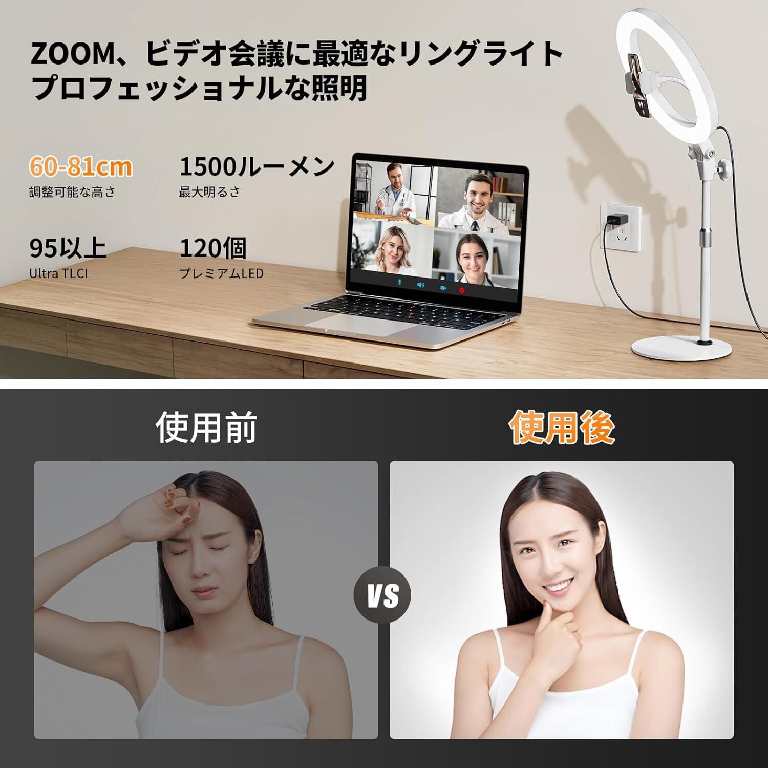 【ライト・ZOOM・ビデオ会議・テレワーク用】リングライト 卓上スタンド 高さ調整可能 3色モード・10段階調光 1500ルーメン USB給電 美肌ライト・美容・配信・オンライン授業対応