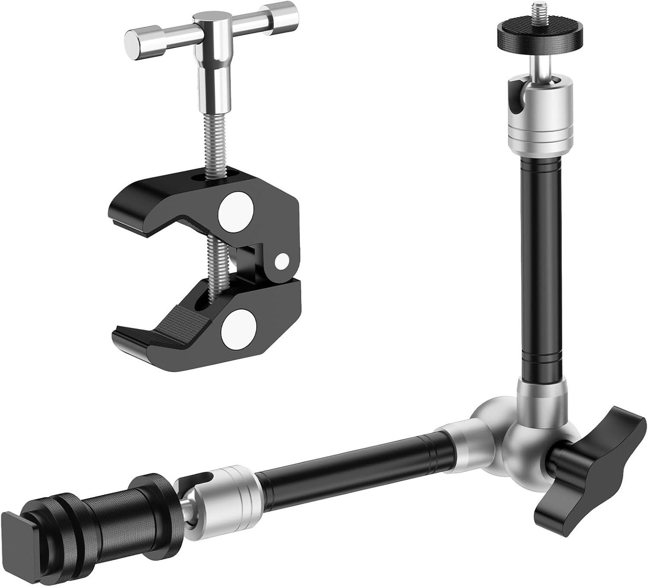 Airika 11"/28cm マジックアーム スーパークランプ 関節式マジックアーム カメラモニターアーム360°調整可能 耐荷重3kg 両端1/4"ネジ付き フラッシュ/LEDライト/マイク/モニ