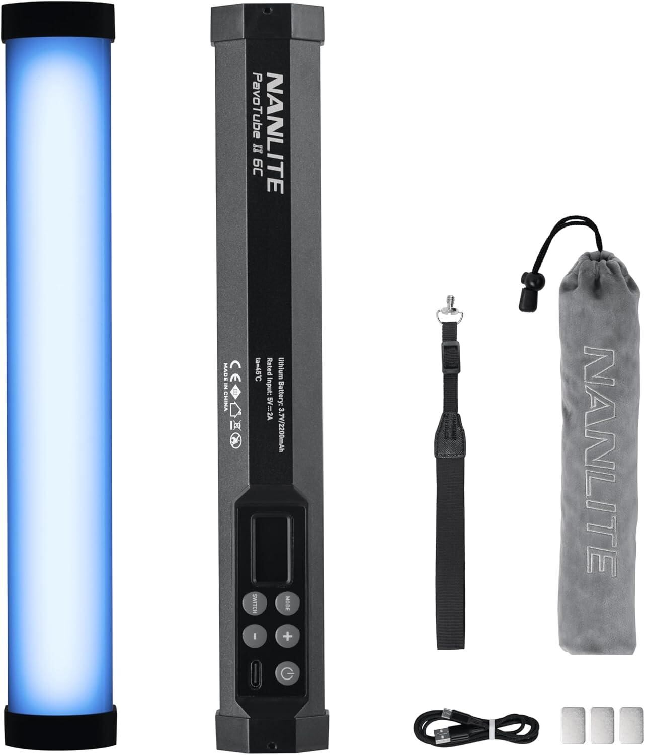 NANLITE PavoTubeⅡ6C スティックライト チューブライト 360°RGB撮影用ライト CRI95 TLCI97 色温度2700-7500K 36000色調光 15種FX光効果 輝度自由
