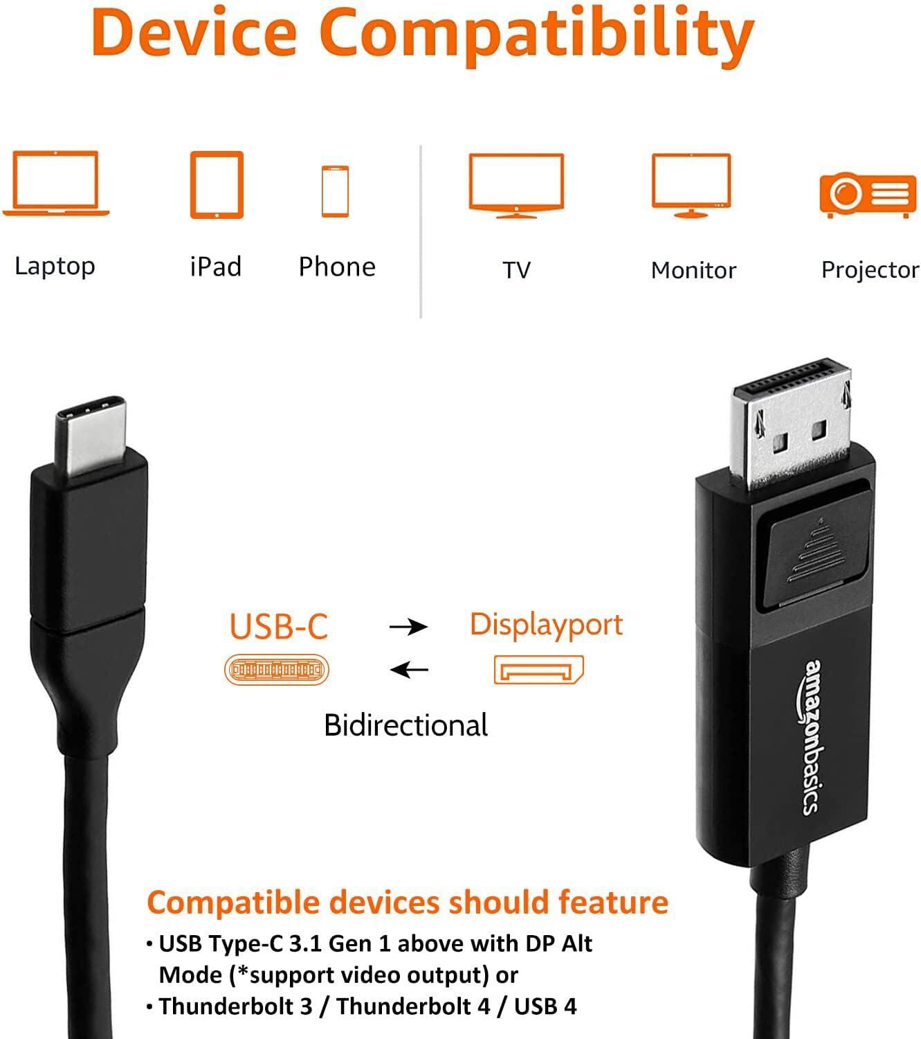 双方向USBType-C ディスプレーポートDPケーブルは、双方向でUSB-C-DPをサポート。USB-C対応デバイスからDP対応モニター、またはDP対応デバイスからUSB-C対応モニター