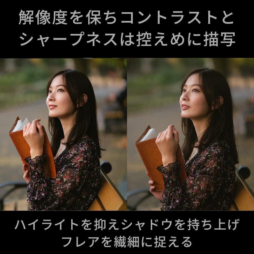 ソフト系のフィルターにありがちな画面全体が白っぽくならず、ハイライトとシャドウ部分のコントラストを抑えます。
