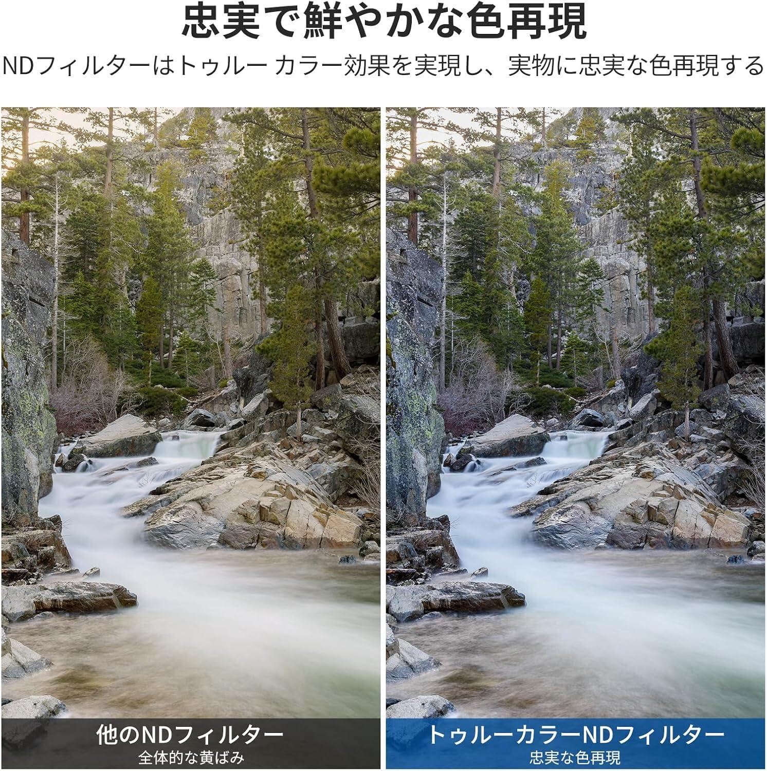 【可変NDフィルターによる正確な露出制御】限定可変カメラレンズフィルターは、ハンドノブを緩めてフィルターを回転させることにより、ND2、ND4、ND8、ND16、ND321~5ストップの範囲で露出を調整し、カメラセンサーに入る光の量を正確に制御できます。ご注意:可変NDフィルターと特定のレンズと焦点距離との相互作用により、最大絞りを使用すると、Xブラッククロスが発生する可能性があります。