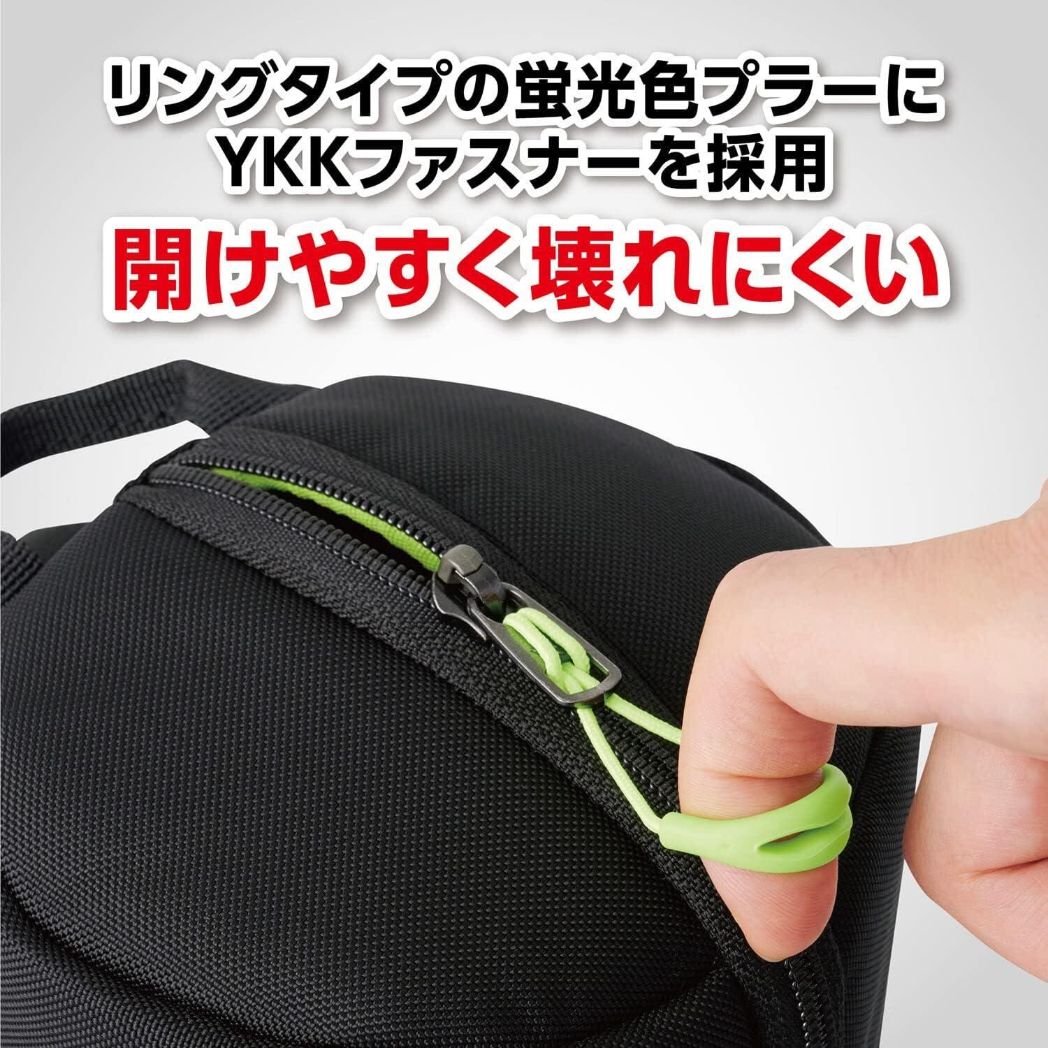 摩耗性に優れ壊れにくい、YKKの織り込みファスナーを採用。バッグ内で探しやすい蛍光色を採用したリングタイププラー。