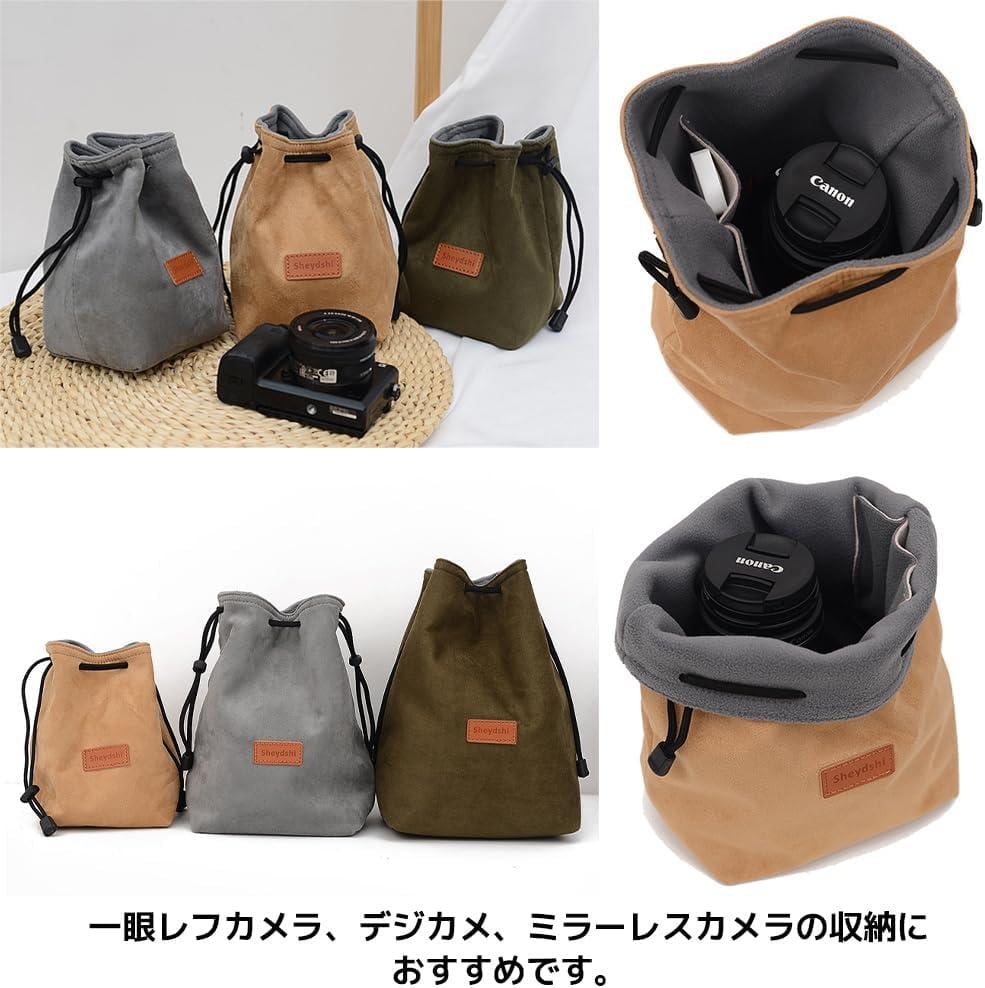 FUPUONE カメラ収納ポーチ レンズケース 巾着タイプ カメラバッグ 一眼レフ デジカメ グリーン, M
