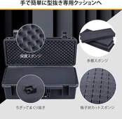 3枚のスポンジが内蔵され、収納物の形に合わせてスポンジをちぎれることで、簡単にDIYできます。