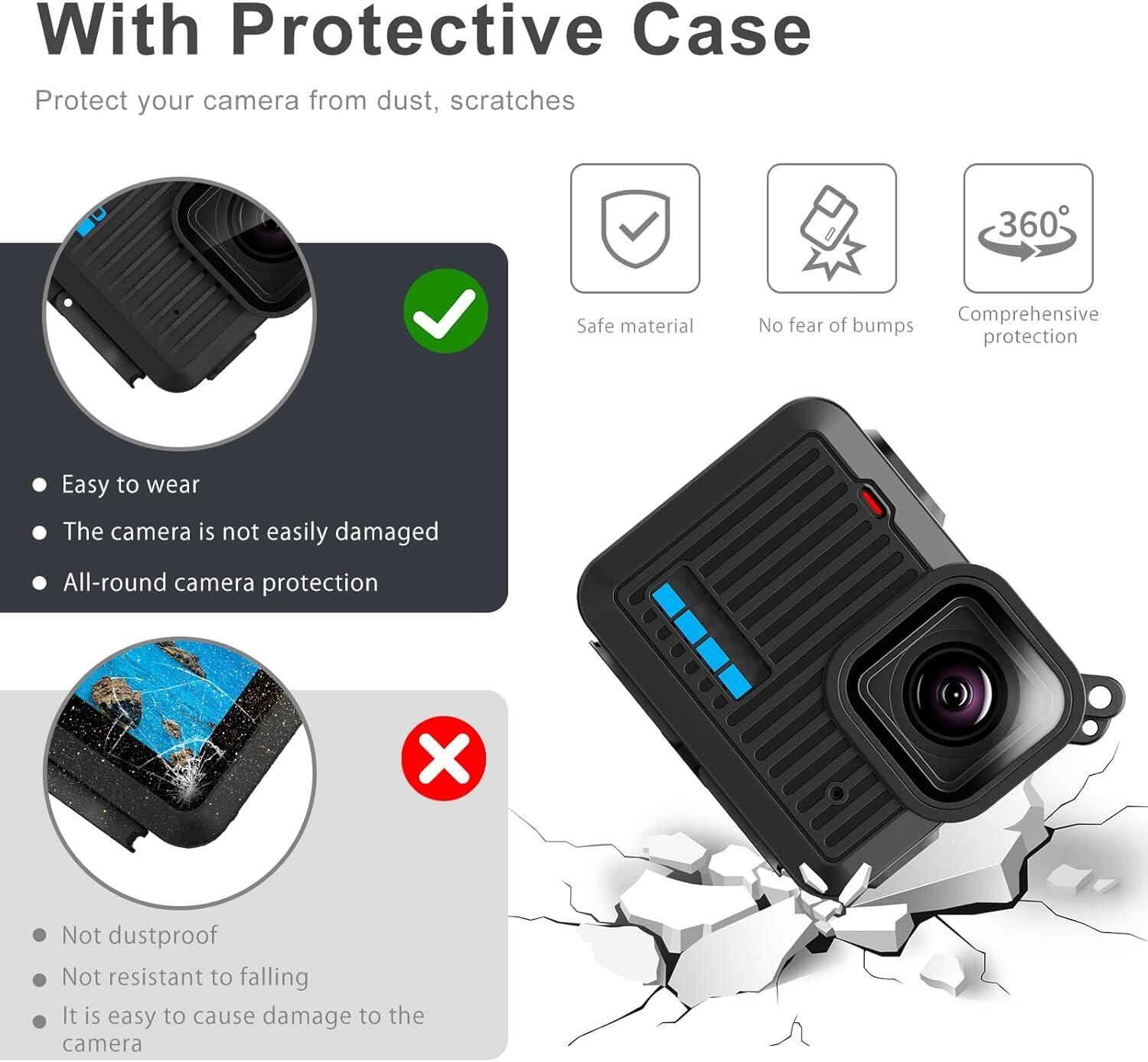 FiTSTILL シリコンスリーブ ラバーケース Go Pro Hero用 保護ハウジングケース バッテリーサイドカバー&スクリーンプロテクター&レンズキャップ&ストラップの交換