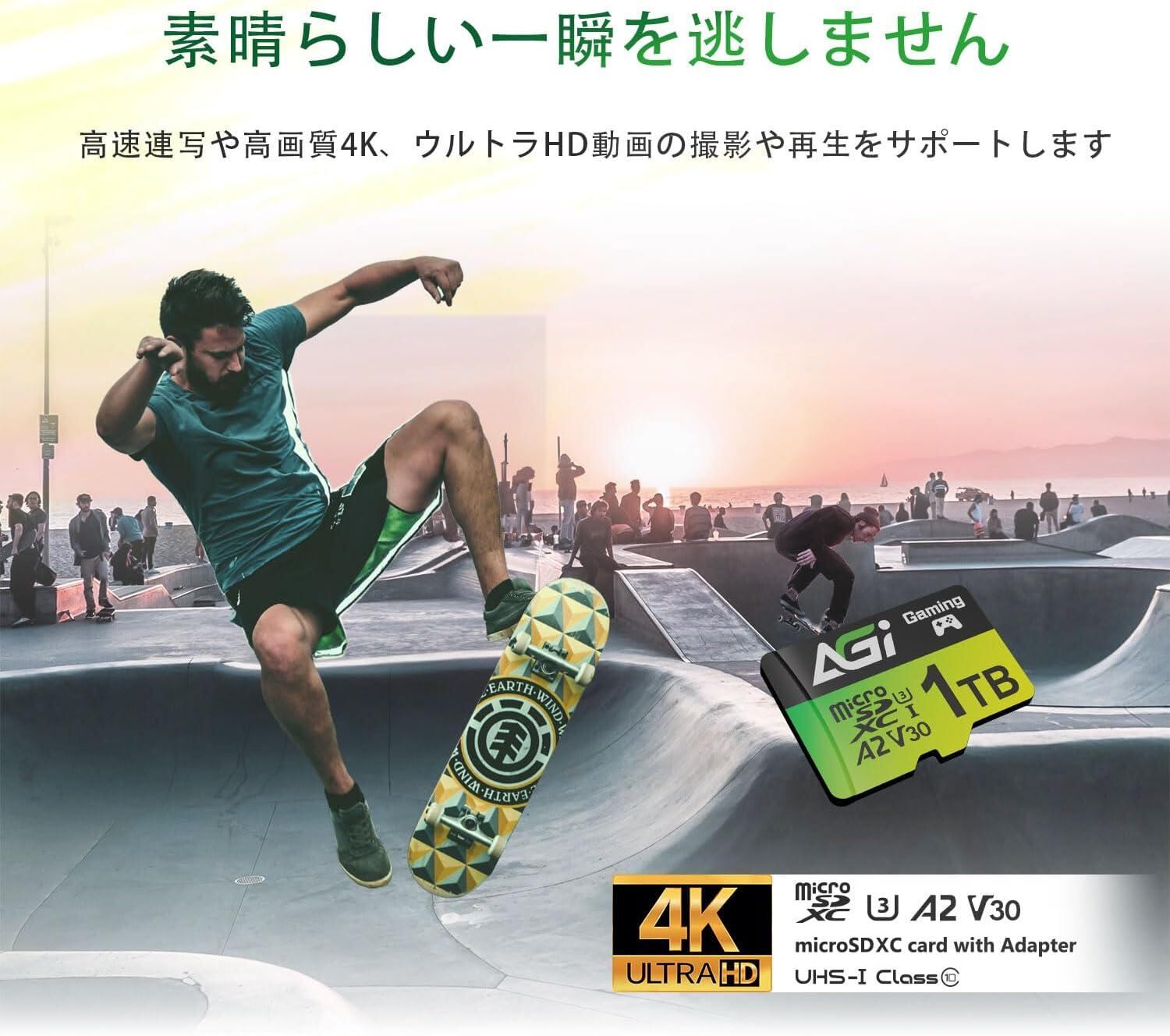 AGI 1TB TF138 マイクロsdカード, Nintendo Switch動作確認済. 高速 MicroSDXC A2 U3 V30 4K UHS-I U3 読み出し速度最大170MB/s、書き