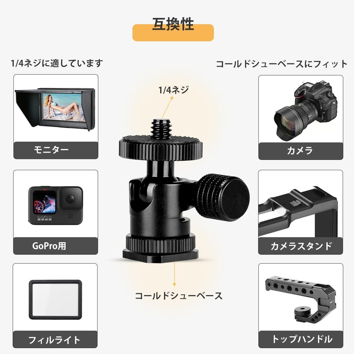 koolehaoda 1/4ミニボール雲台とシューマウントアダプターは、カメラビデオライト三脚一脚に適しています1/4雲台