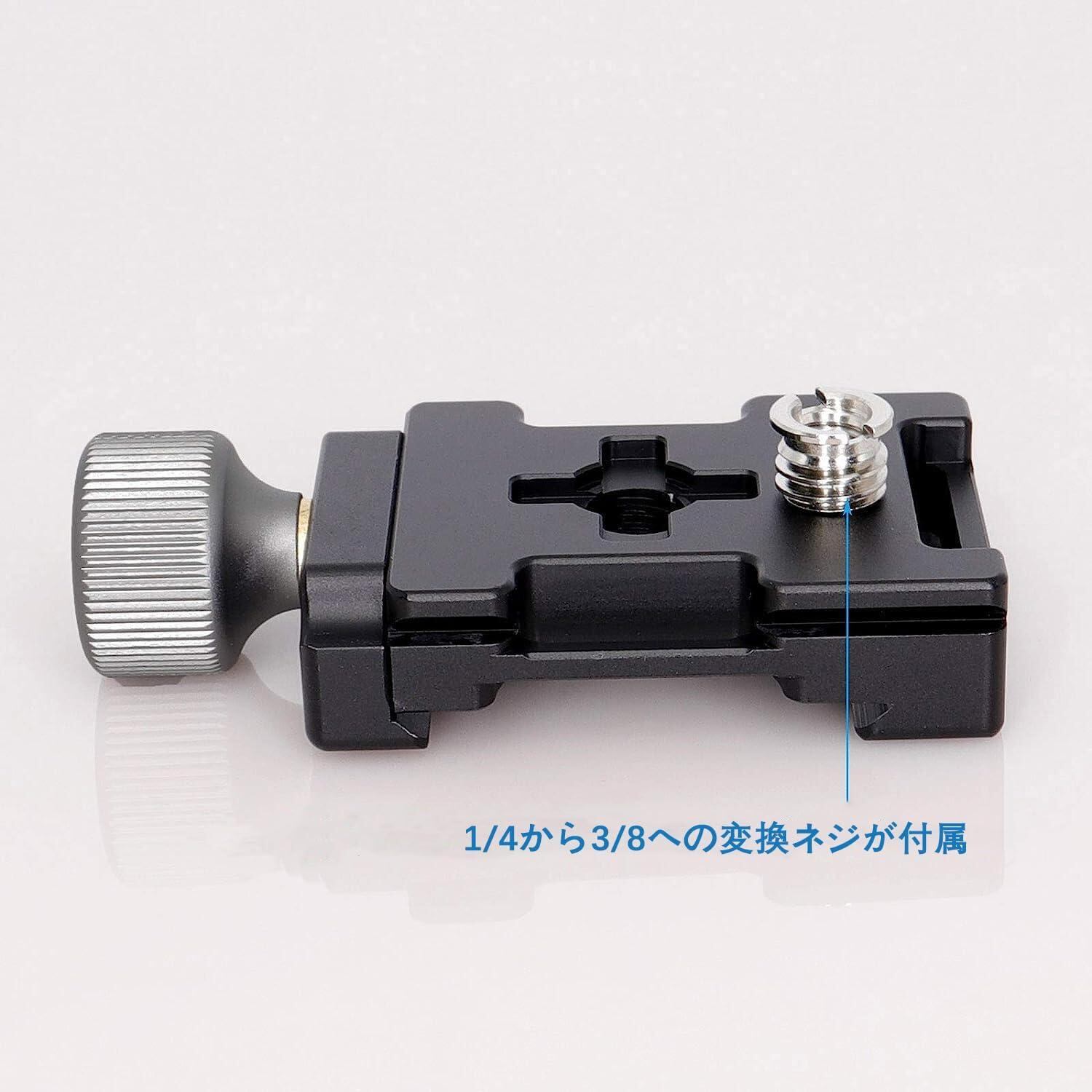 底部スロットは Arca 38mm 規格に適合するように設計されており、ベースマウントは Arca カードスロットにスナップできます。3/8 インチのネジ穴 1/4 インチ - 3/8 インチのネジアダプター付き は、ほとんどの DSLR、三脚、一脚、スタビライザー、ジンバル、ボールヘッドに適合します。Arca-Swiss クイックリリースプレートと互換性があります。