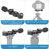 Koolehaoda クイックリリースプレートクランプ、Arca SwissタイプQRクランプ、3/8"-1/4"ネジアダプター付き、三脚一脚ヘッドに対応