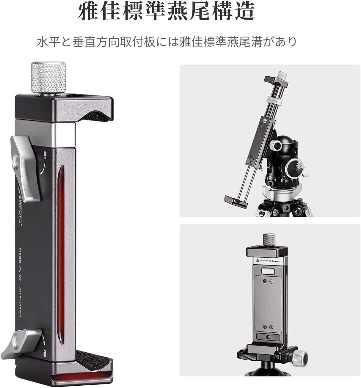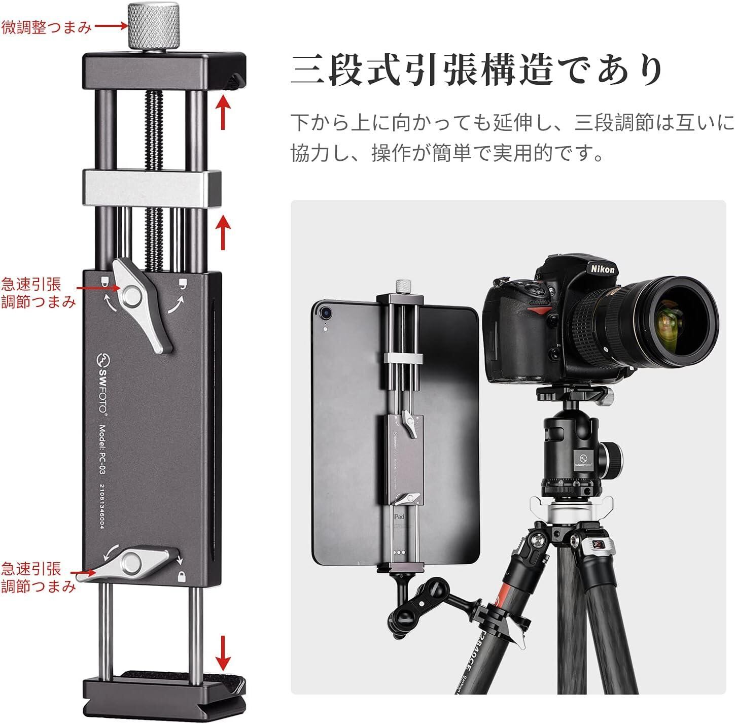 SWFOTO PC-03タブレットブラケット金属固定クリップARCA-SWISS ダブテールダブテール三脚専用撮影ブラケット、103-310mm幅のタブレットに適応します ラップトップ スマホホルダー