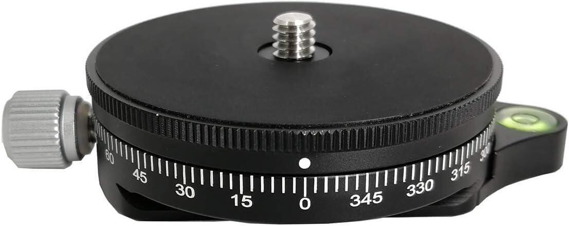 ➤360度スケール:プロ仕様のカメラ用三脚パノラマヘッド。水平回転の目盛りは0〜360°です。 1停止間隔15°、1円360度の停止間隔24。撮影角度を正確に制御できます。