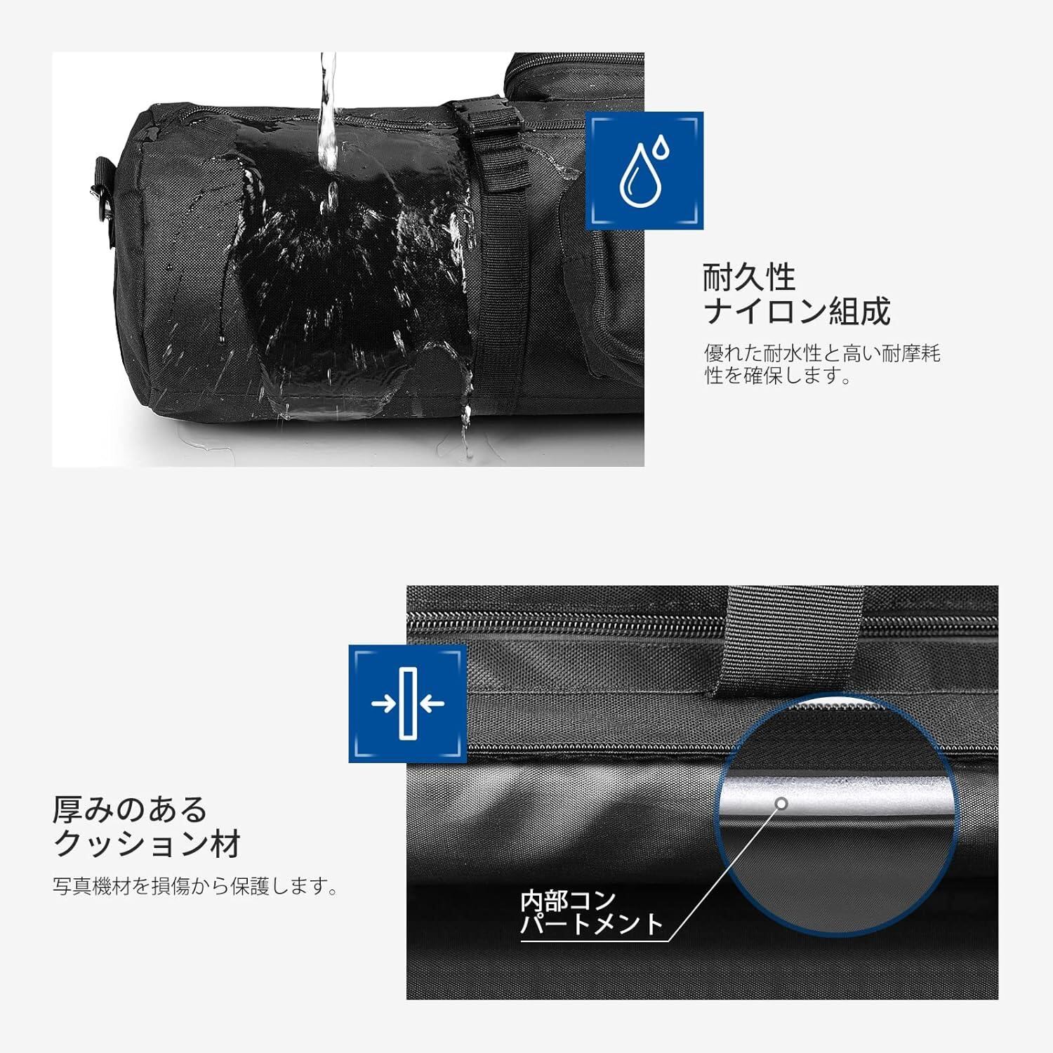 【ナイロン構成】NEEWER 三脚キャリングケースは、頑丈で耐久性のあるコーデュラウェビングナイロン製です。優れた防水性と高い耐摩耗性により、カメラの三脚、楽器、譜面台、釣り竿、ライトスタンドなどを安全に持ち運ぶことができます。