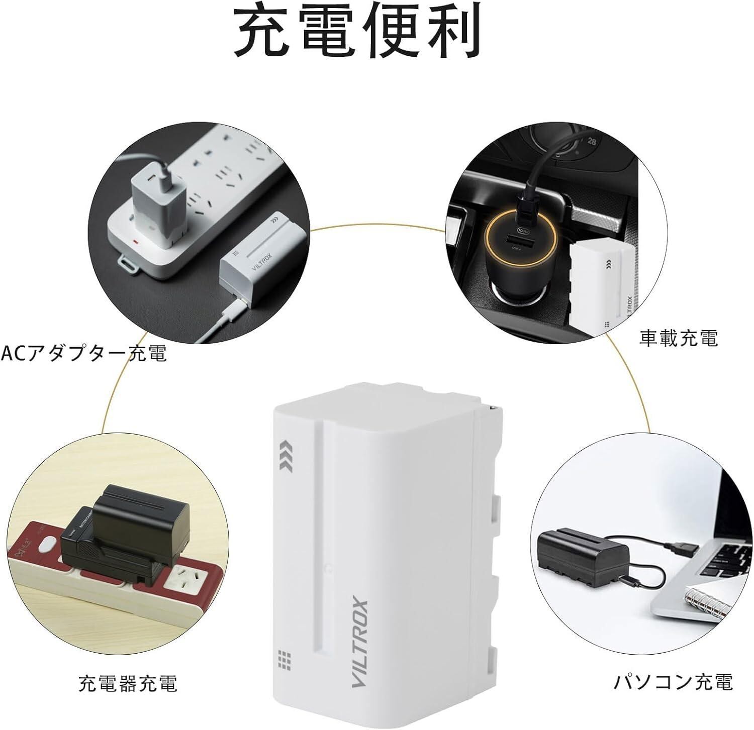 VILTROX LEDパネル照明 4400mAh NP-F750 残量表示バッテリー 一個ビデオライトバッテリー NP-Fシリーズ交換バッテリー USB Type-C充電 DC-55HDモニター/Sp
