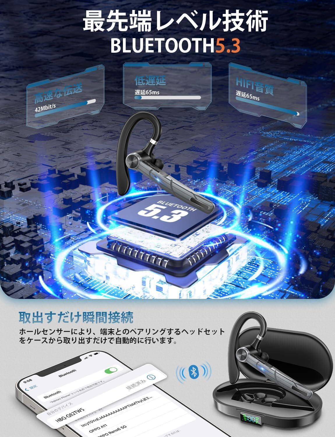 ヘッドセット bluetooth【ワイヤレスの最高傑作・Bluetooth5.3+EDR】 片耳 Bluetooth イヤホン 最大110待受時間 500mAh充電ケース付 LEDバッテリー残量ディス