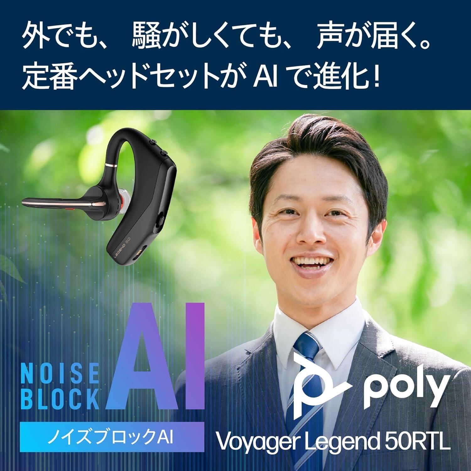 Poly Voyager Legend 50RTL 片耳 Bluetooth ヘッドセット|NoiseBlockAI AIノイズ除去 + WindSmart 風切り音低減・ノイズキャンセリングマイク|