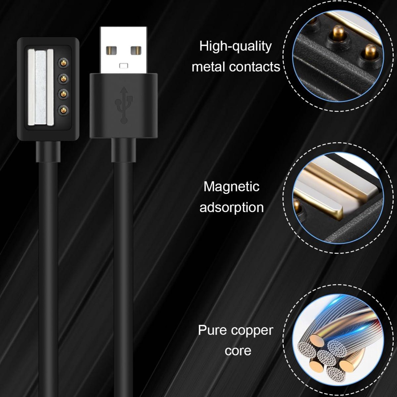 安定した接続: 4ピン銅コア磁気接点を搭載し、強力な磁力で、時計は安定した接続を確保するために近づくと自動的に吸着します。デバイスの充電やソフトウェアのアップデートには、この磁気USBケーブルを使用してください。
