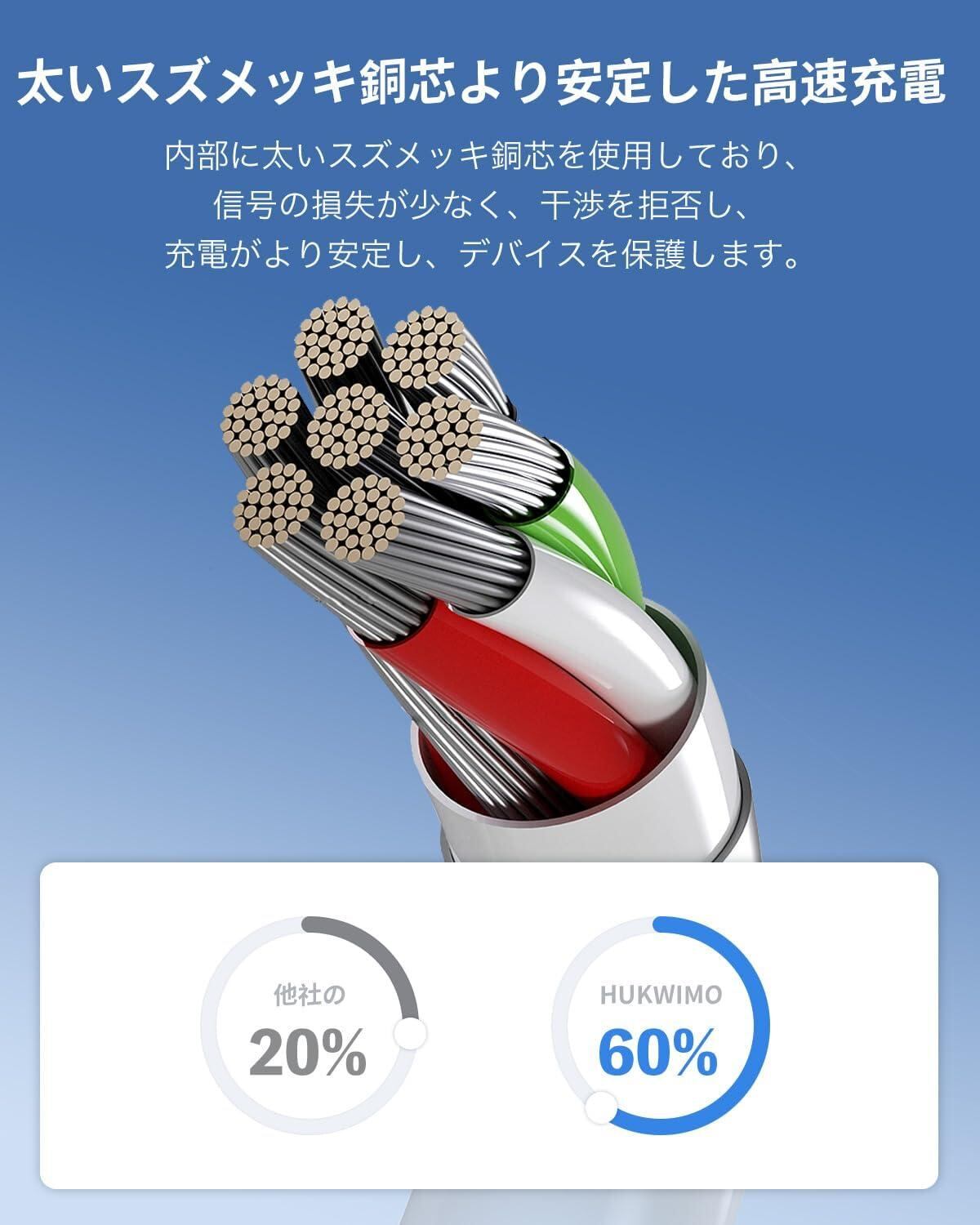【卓越な耐久性】当製品は、断線や短絡を防ぐ工夫が凝らされており、根元部分も耐久性を考慮した設計になっています。最も耐久性のある素材を使用し、数百回以上の折り曲げテストに合格しています。そのため、劣化が少なく、長年にわたってご利用いただけるでしょう。