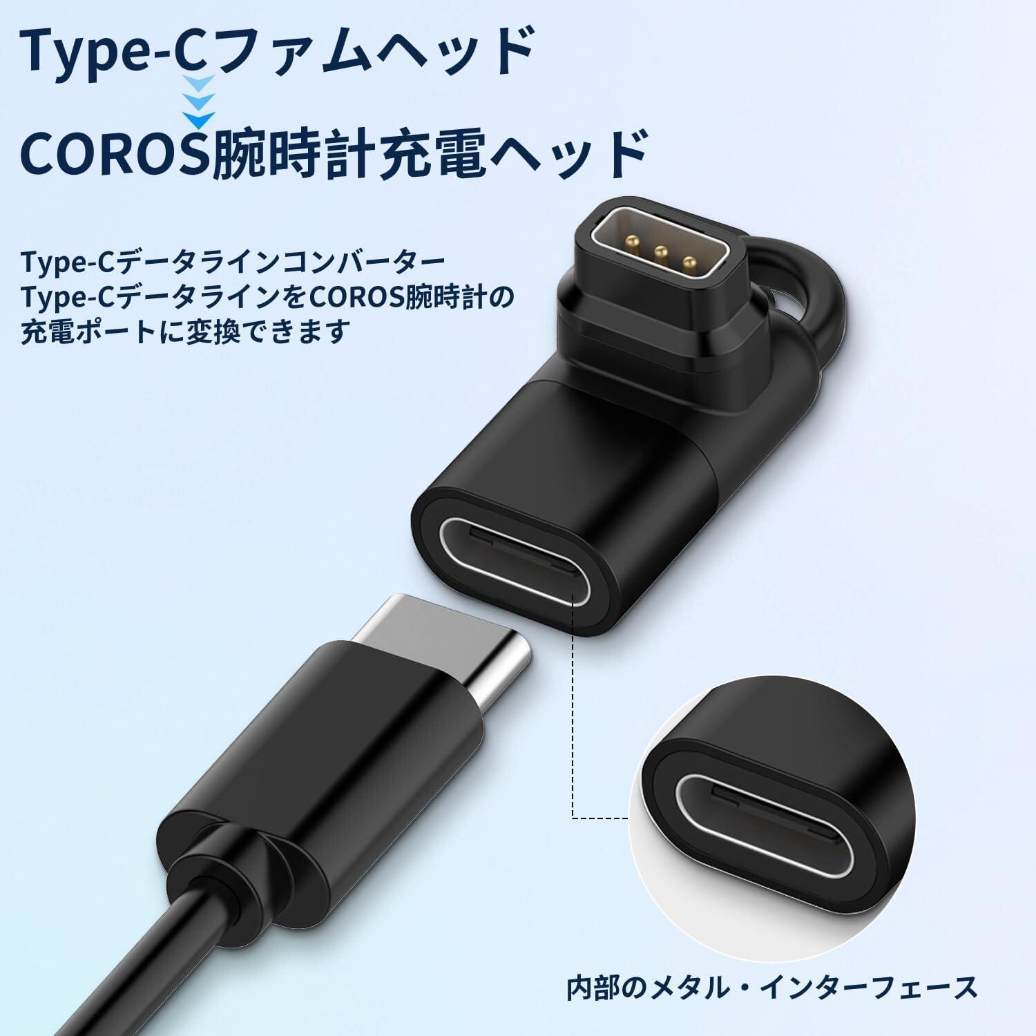 【1+1セット】COROSカロスに適合変換アダプター1個 Type-C用 充電ポート+紛失防止ロープ1個 【HUKWIMO】COROS 変換マイクロ 急速充電 COROSカロス PACE Pro シリ