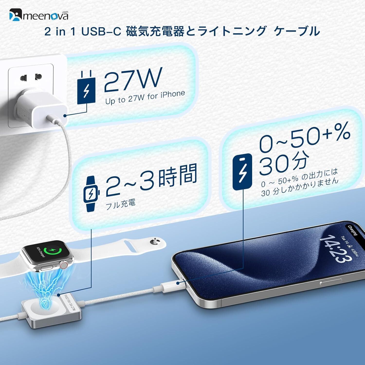 旅行に便利27Wアップルウォッチ 充電器2in1 iPhone Watch 充電ケーブル ウォッチ 充電器アップルウォッチ9スマートウォッチ 充電器純正 Watch Series 9/8/7/6/SE