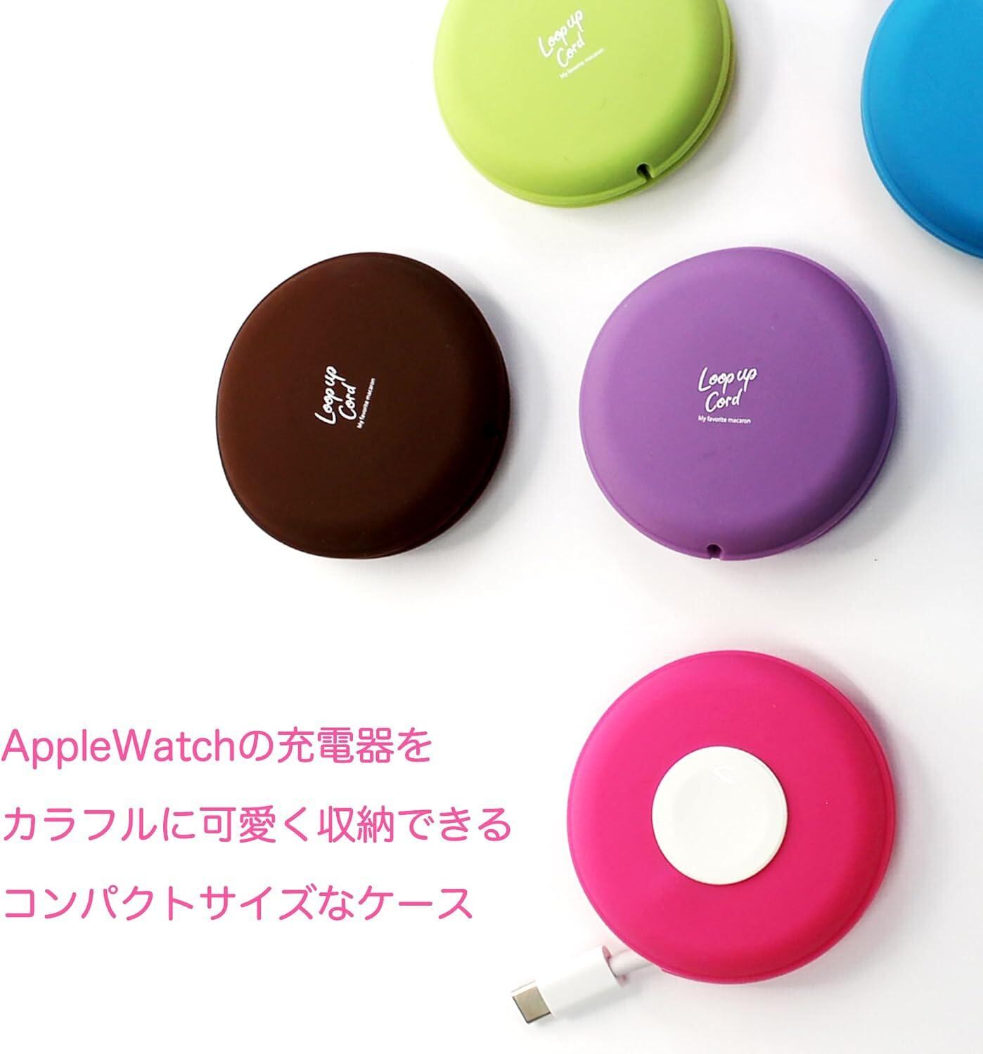 クールモバイル Apple watch ワイヤレス充電ケーブルType-A型 収納ケース マカロン型 ピンク 巻き取り カラフル 充電スタンド 持ち運び 軽量