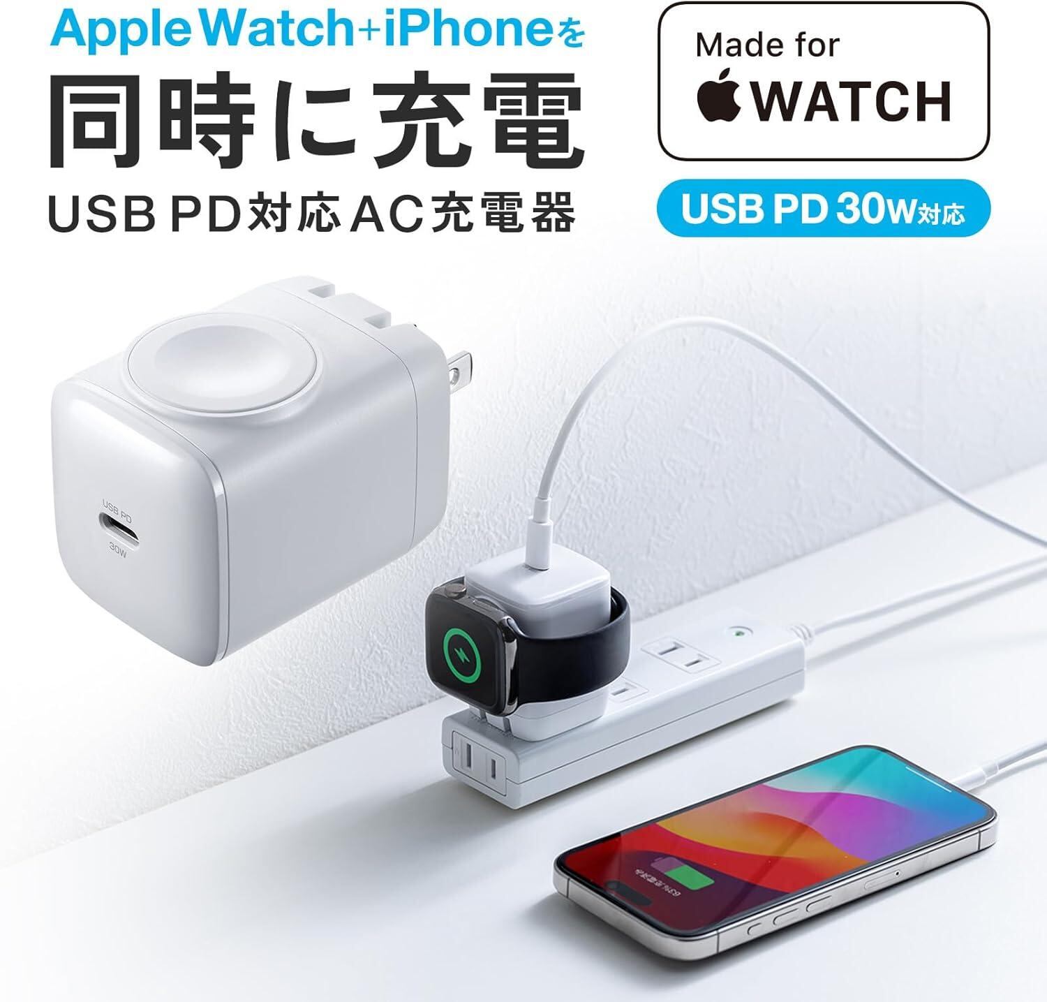 サンワサプライ USB AC充電器 Apple Watch磁気充電モジュール付き Made for Apple Watch認証 PD30W対応 ACA-PD101