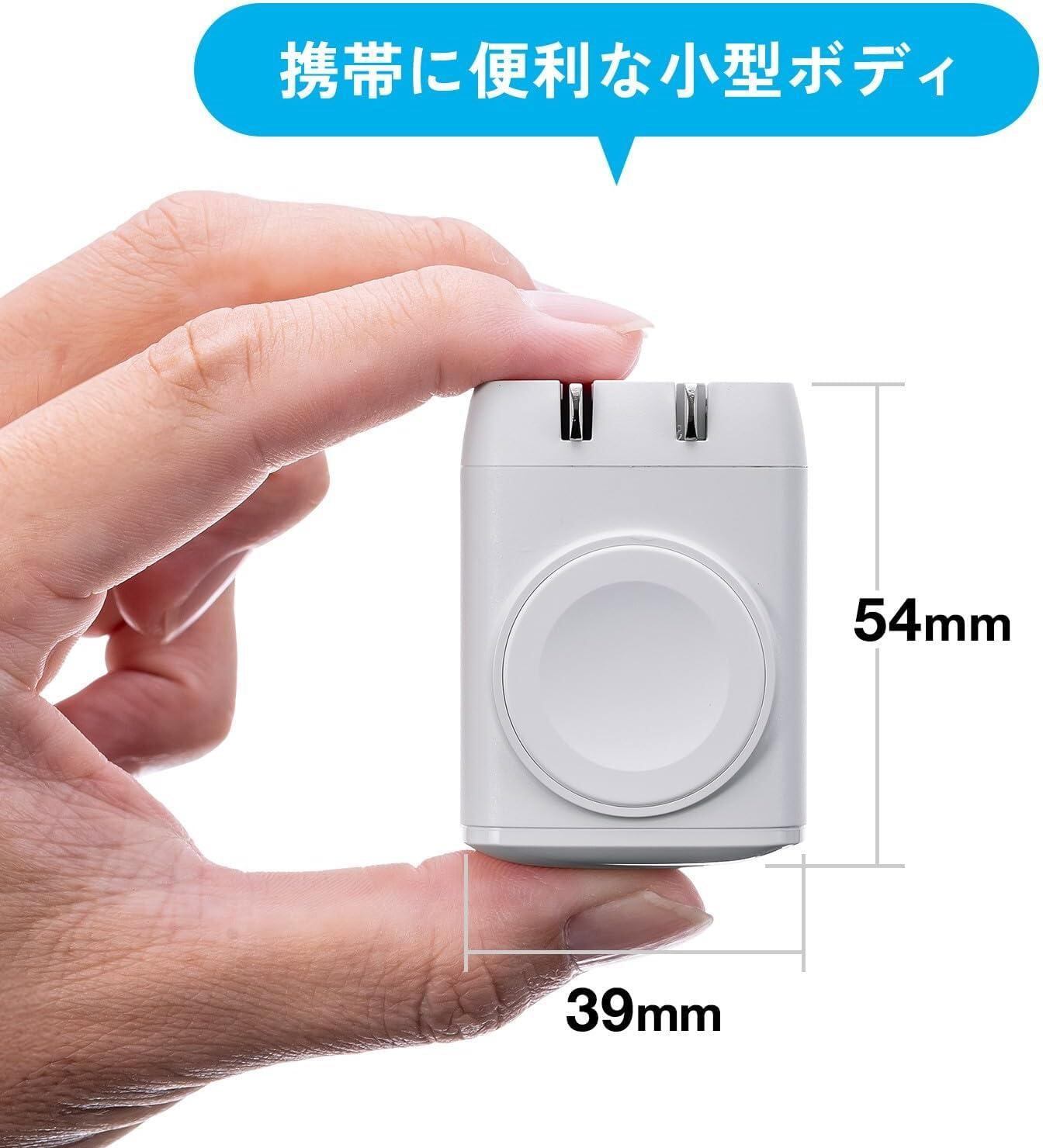 iPhoneやiPad、AirPodsなどのUSB Type-Cポートを使って充電する機器とApple Watchを1つの充電器で同時に充電できる、Apple Watch磁気充電モジュール一体型のAC充電器です。