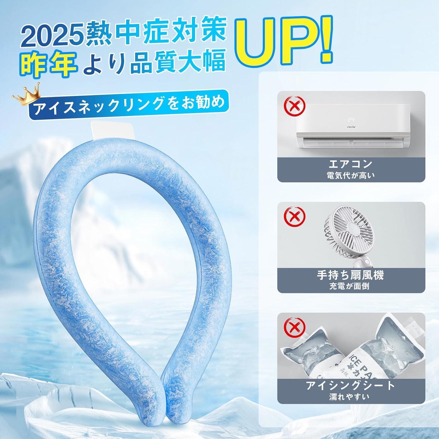 2025夏新登場!アイスネックリング昨年よりNASA素材PCM80%増量!お客様の声を更に反映した最新のクールネックリング進化版を再開発しました。日本の各メディアが推薦!暑い真夏の季節でもネックリングは首ひんやりグッズ!28度以下の空間で凍るで作られた首元用のアイスネックリング、 水や他の冷却グッズよりも早く冷却し冷凍庫または氷水で5-20分、長く効果が続きます。