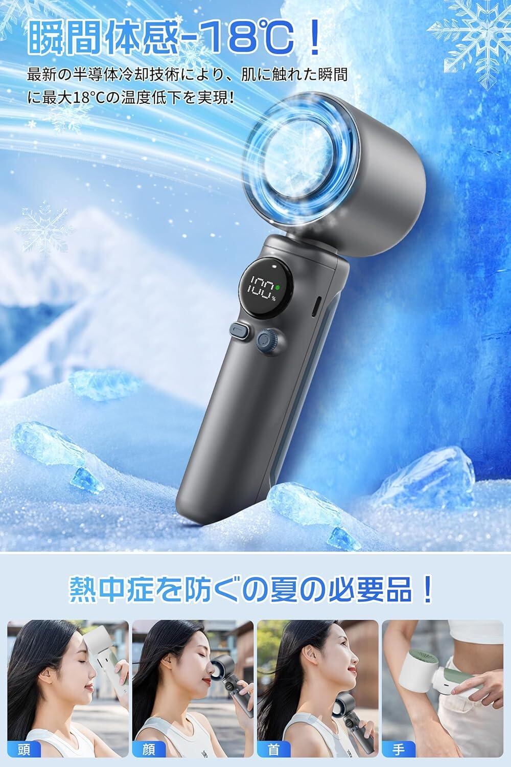 2025年夏改良モデル冷却ハンディファン!冷感プレート・触って-18℃体感!Zabapure最新のハンディ扇風機は吸い込んだ熱気を急速に圧縮して冷却し、冷風に変えて吹き出します。特徴するペルチェ材料冷却プレートとファンの二重構造で、送風中に電源スイッチを長く押すと体感温度は最大18℃まで下がります。 氷のように冷たいプレートを、頬やおでこ、手首、首元など肌に心地よい氷のような冷感をもたらします。これにより、暑い日に瞬時に冷却されます。