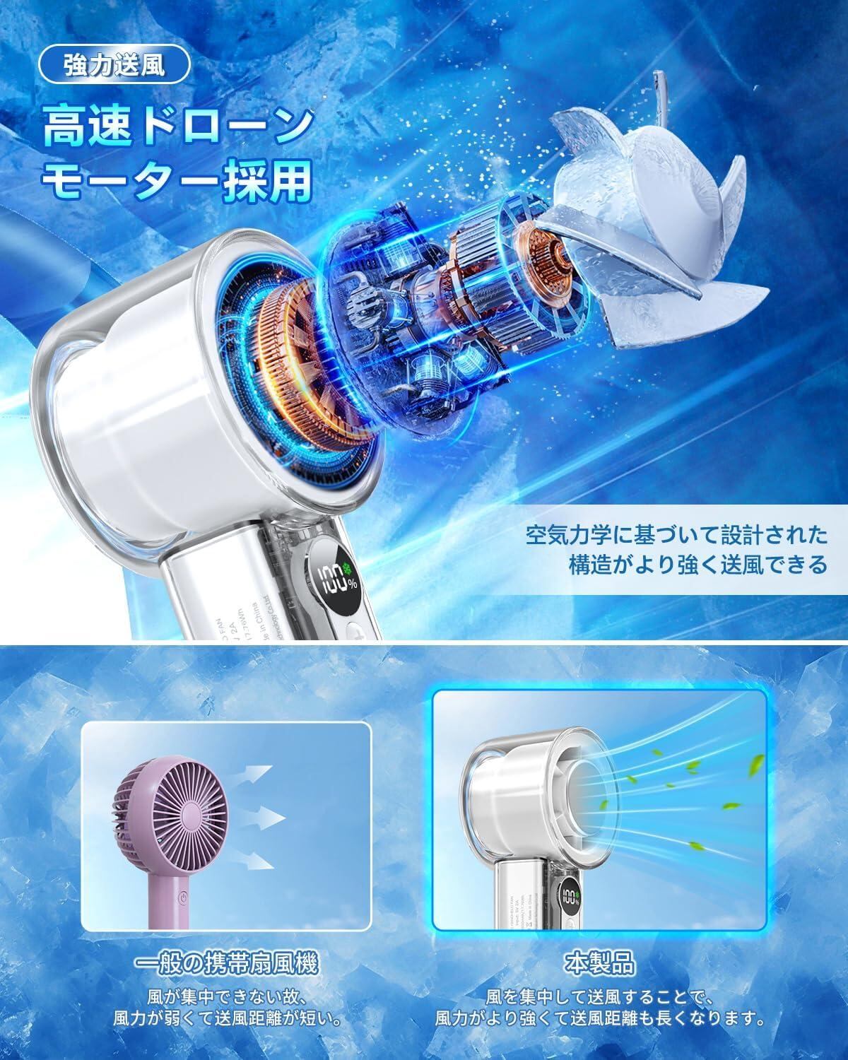 ハンディファン 冷却プレート搭載-20℃瞬間冷却・無段階100段&段階調節対応・1台多役・2025新登場超高速暴風 大容量 長時間稼働 手持ち/卓上/手首掛け4way LED残量表示 軽量 小型 ミニ