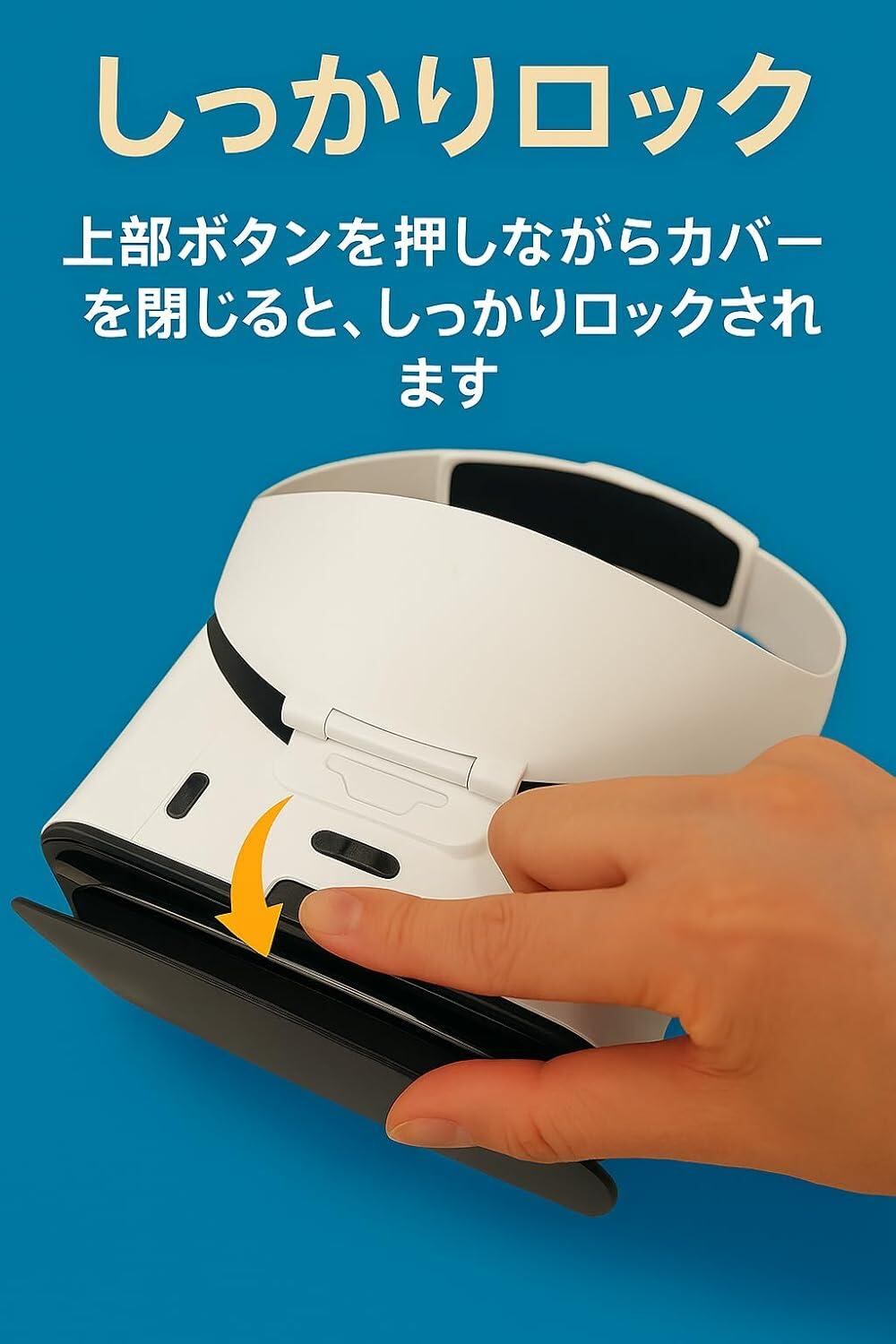 持ち運びラクラク!取り外し可能なヘッドバンド:ヘッドバンドはワンタッチで簡単に取り外し可能。コンパクトに折りたためて、旅行カバンやリュックにもスッキリ収納! 従来型VRゴーグルと比べて、収納サイズが約40%小型化。