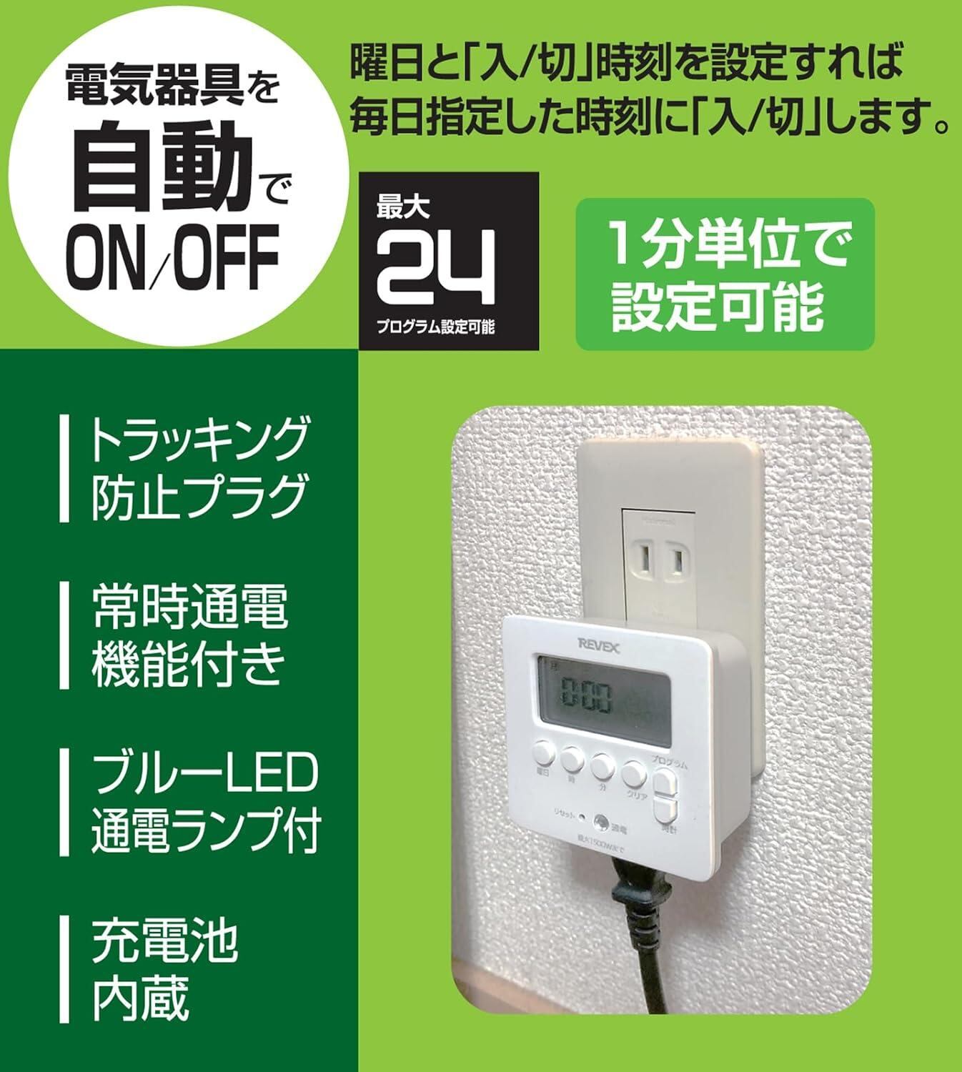 リーベックスRevex コンセントタイマー デジタルタイマー ホワイト PT80DW