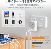 【コンセント不足解消】oタイプ 変換アダプは4個AC口、2口のUSB-Aポートと1口のUSB-Cポートからなる変換プラグです。AC口が各方面に分配され、大きく大きなアダプター同士が同時に挿入してもお互いに干渉せずに使用出来ます。1台で6つの電気機器を同時に使用可能です。コンセント不足の悩みがなくなります。